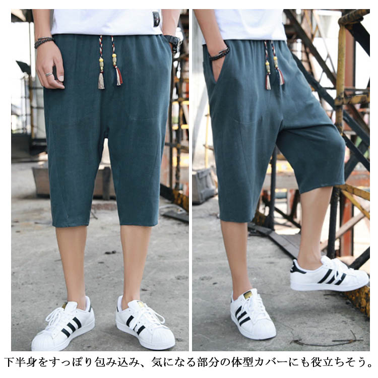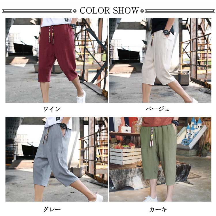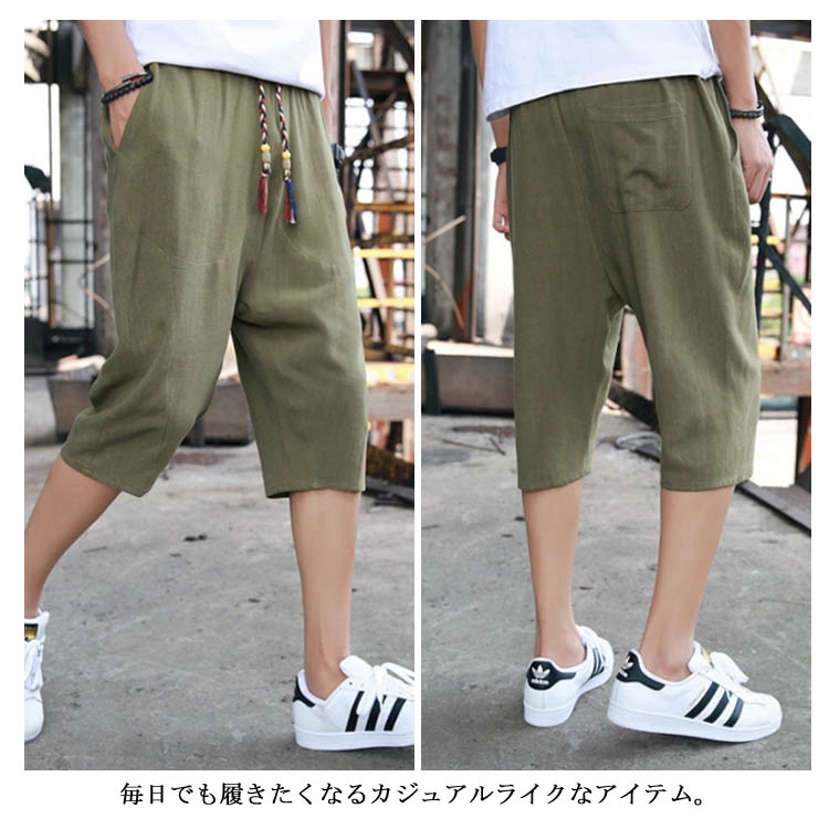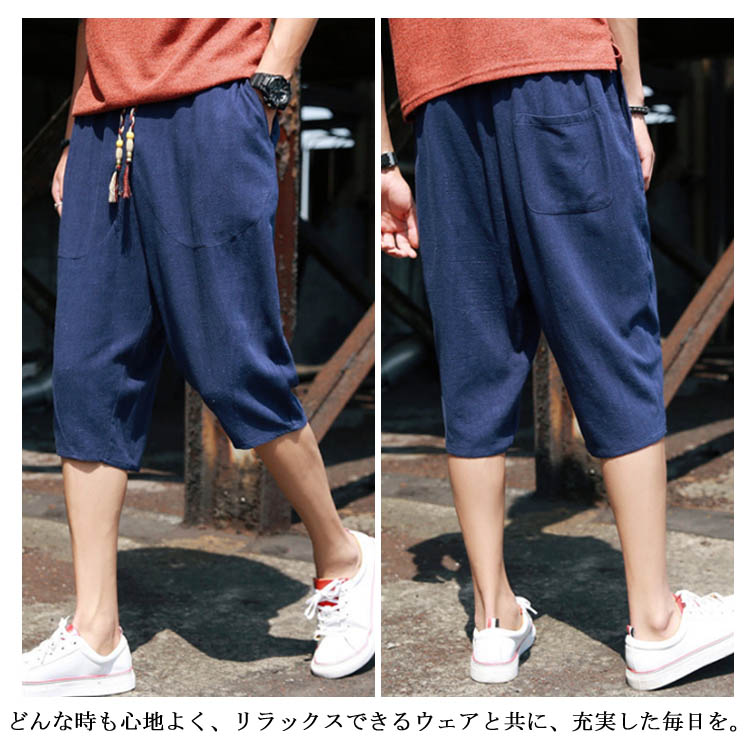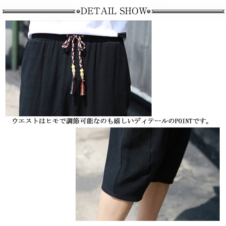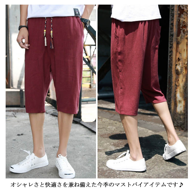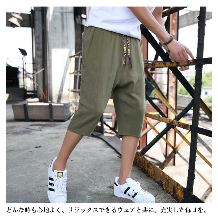 7分丈 パンツ リネンパンツ サルエルパンツ 綿麻 パンツ メンズ リネン パンツ ロングパンツ ワイドパンツ クロップドパンツ リラックス パンツ イージーパンツ リラックス