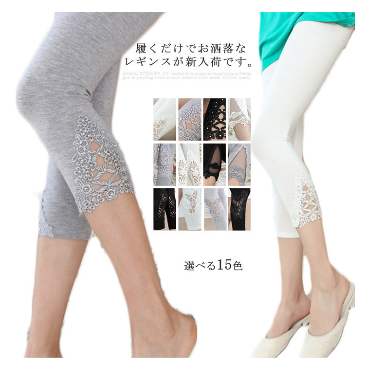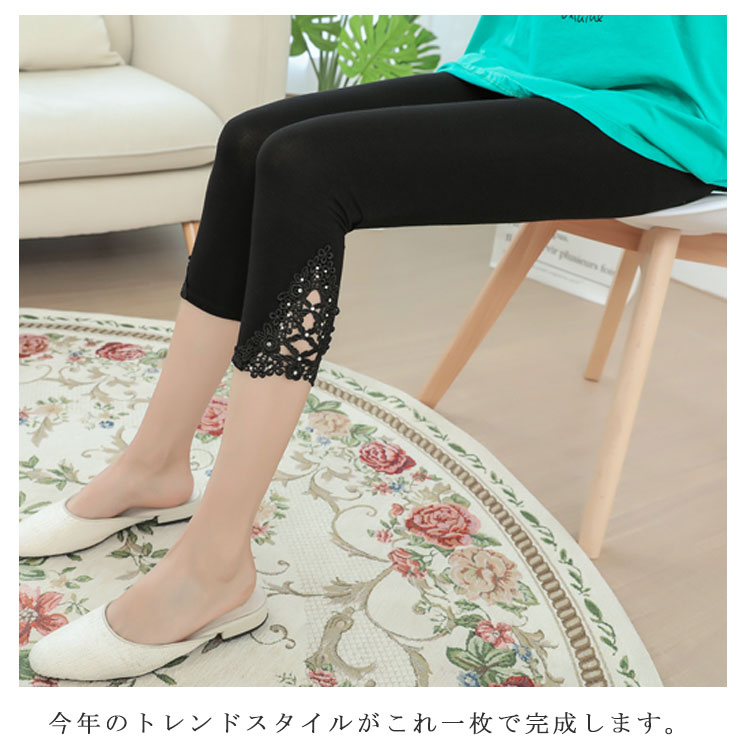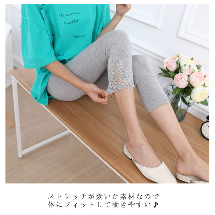 美脚 レギンスパンツ レギパン 夏 レディース 刺繍 レース レギンス レギパン 7分丈 ストレッチ スキニーパンツ レギパン レギンスパンツ ボトムス インナーパンツ サマー パンツ