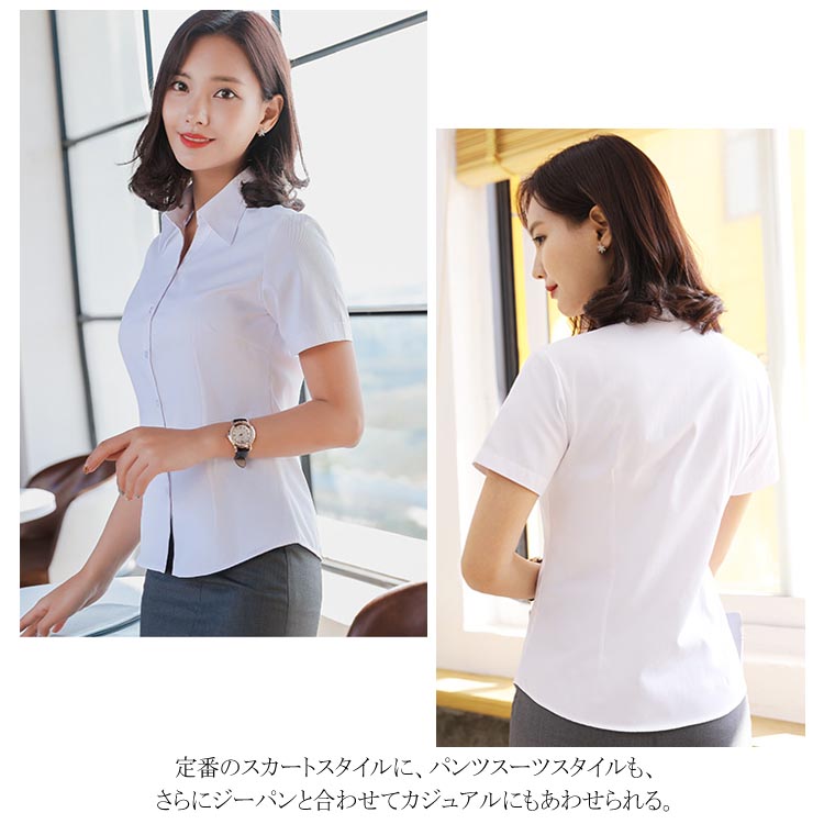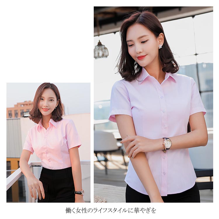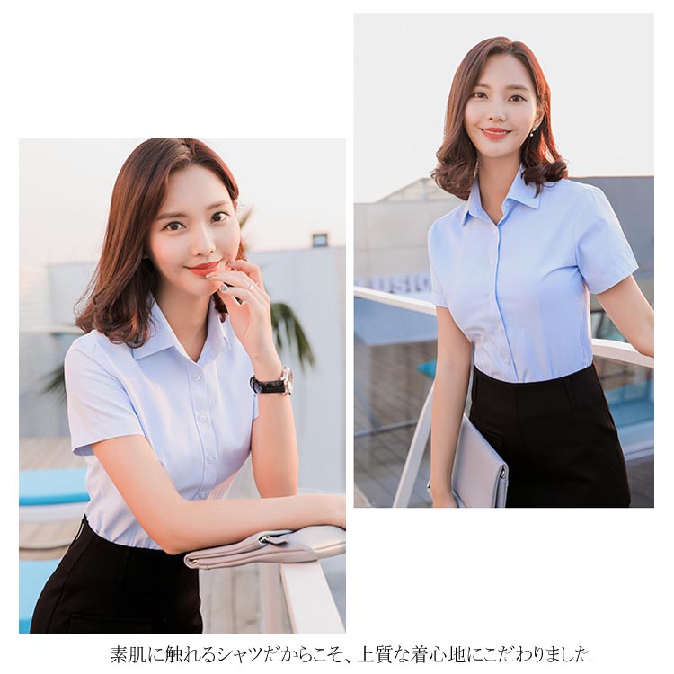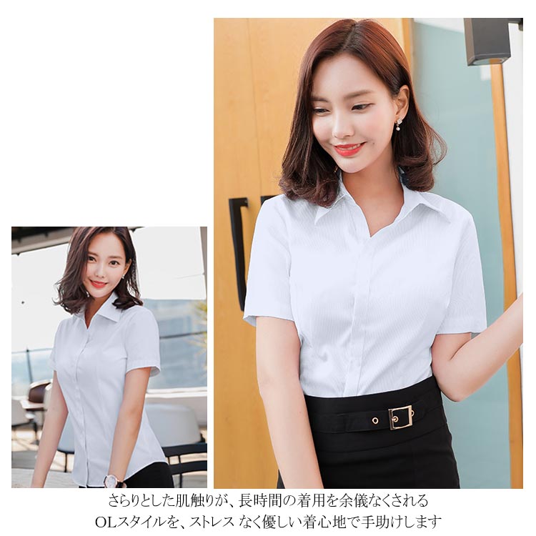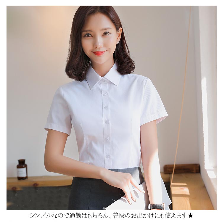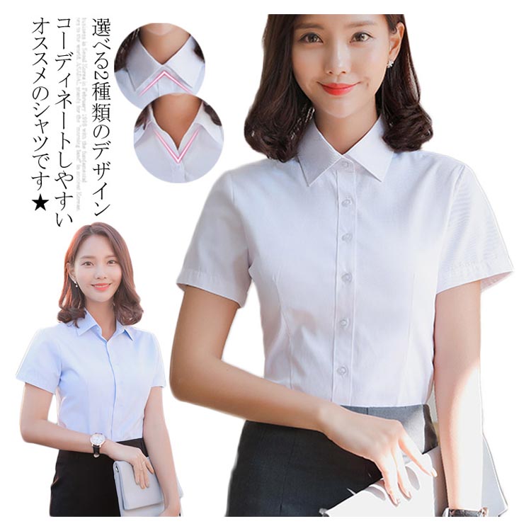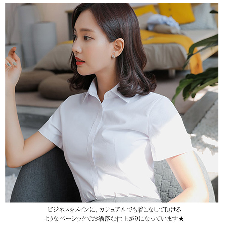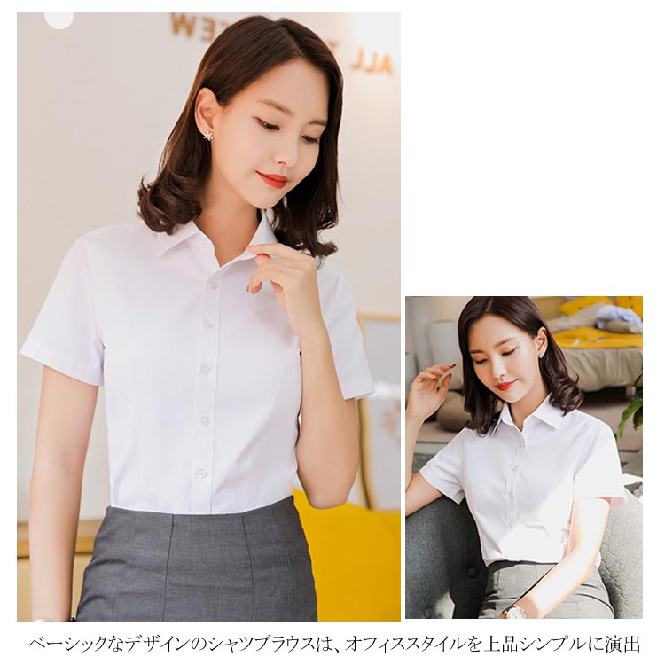 送料無料 レギュラーカラー 半袖ワイシャツ スリムワイシャツ ワイシャツ レディース ワイシャツ 半袖 クールビズ 事務服 制服 シャツ ブラウス OL 通勤着 フォーマル ビジネス リクルート 無地