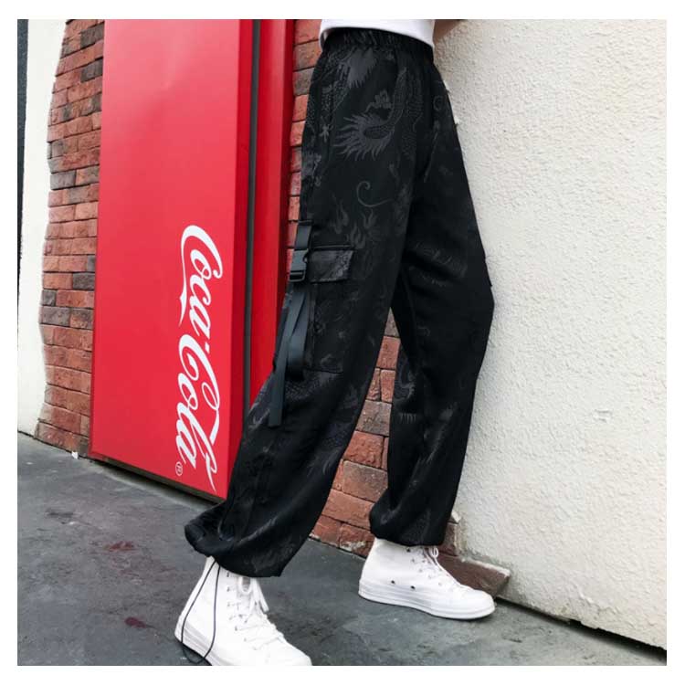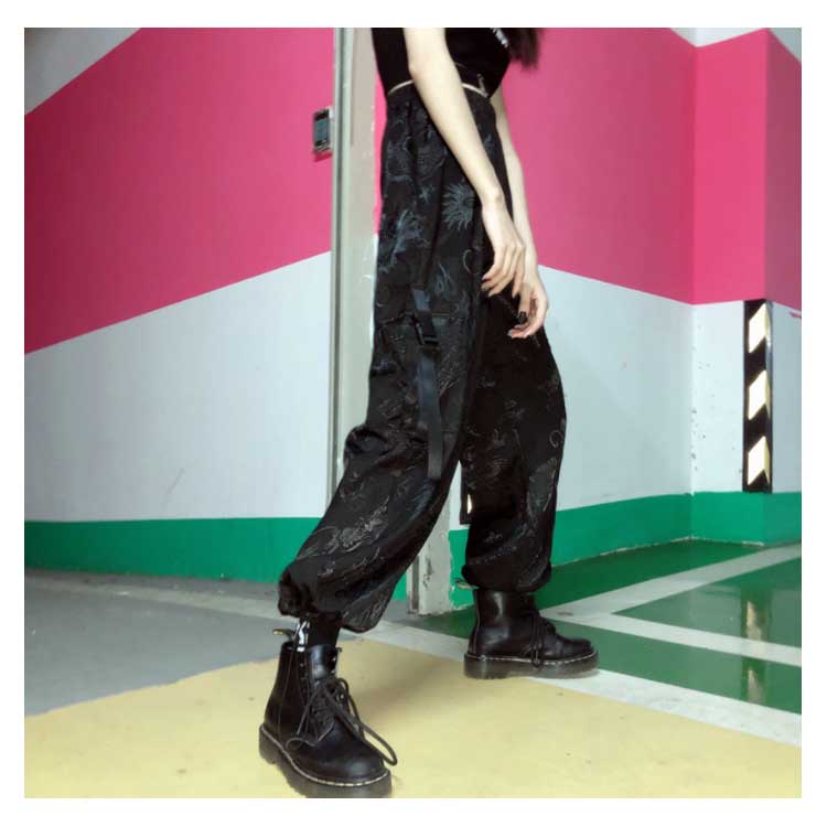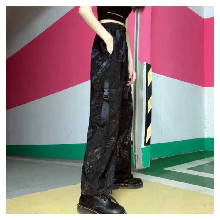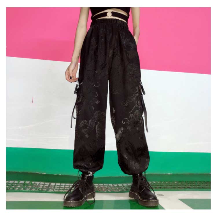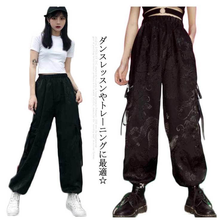 ドラゴン 龍 ロングパンツ カーゴパンツ ワークパンツ ミリタリーパンツ ジョガーパンツ レディース サルエルパンツ リラックス パンツ ヒップホップ 韓国ファッション HIPHOP ストリート ダンス 衣装 原宿系