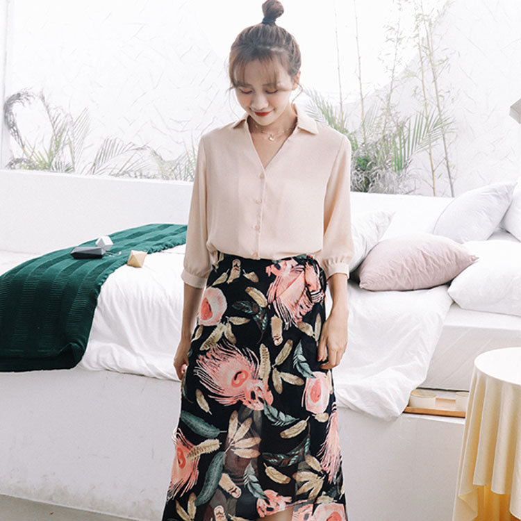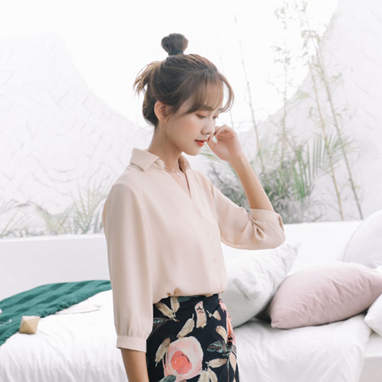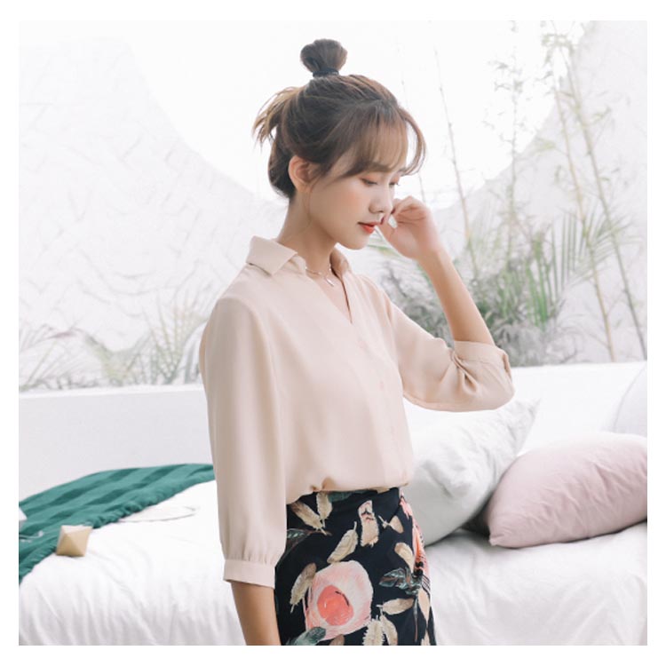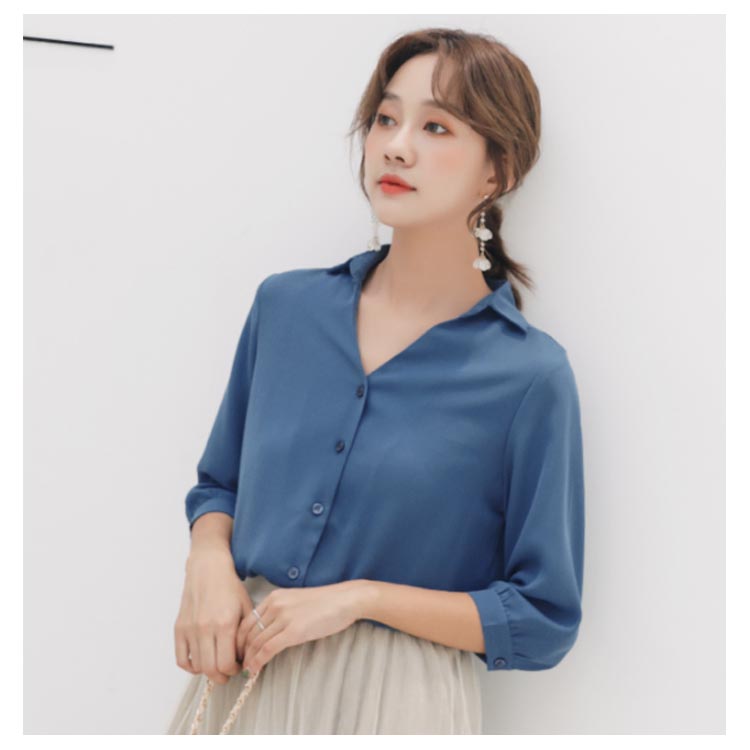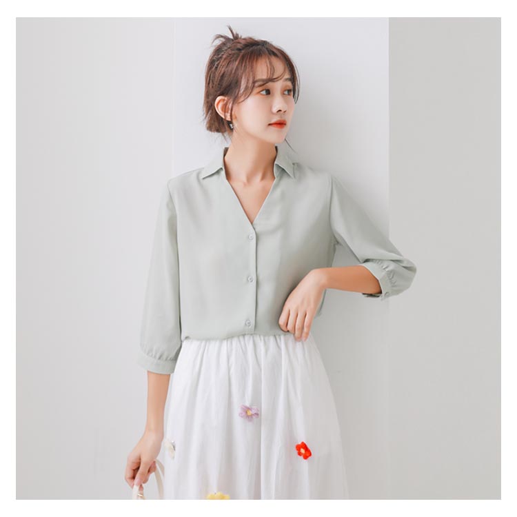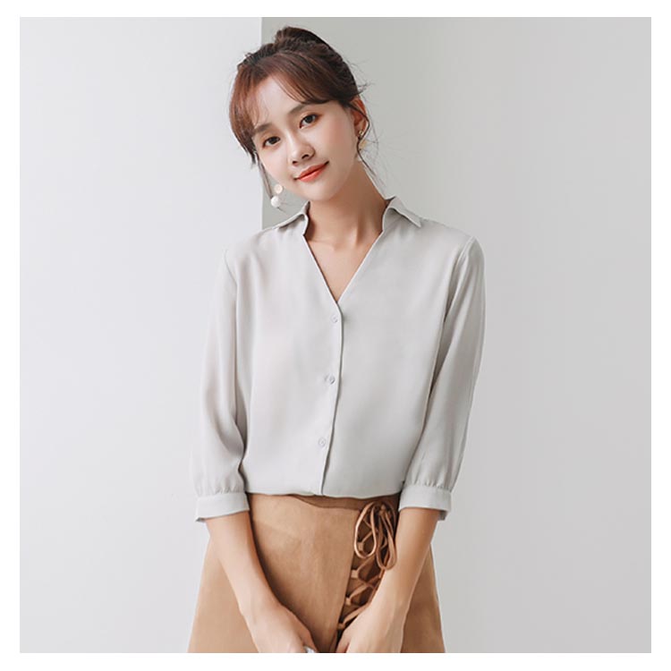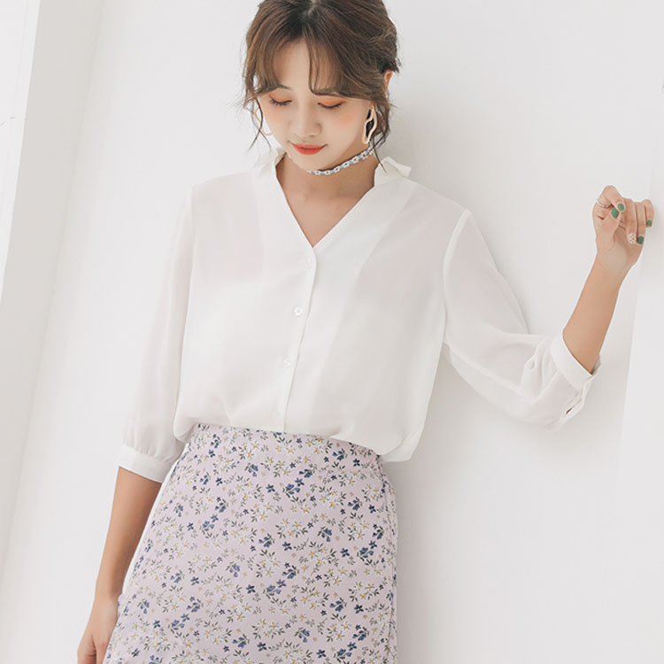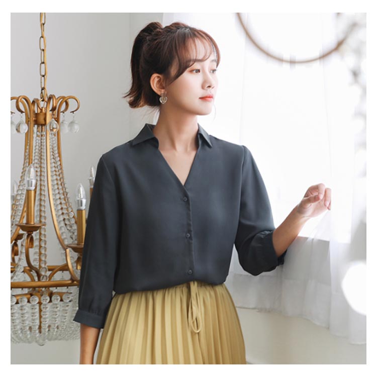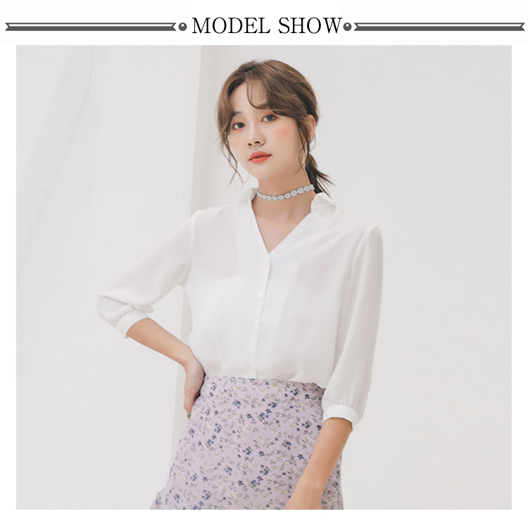 送料無料 ブラウス レディース シフォンブラウス シャツブラウス 七分袖 スキッパーシャツ Vネック 透かしブラウス 無地ブラウス キレイめ こなれ感 フェミニン こなれ感 トップス プルオーバー 春物 夏物 夏新作