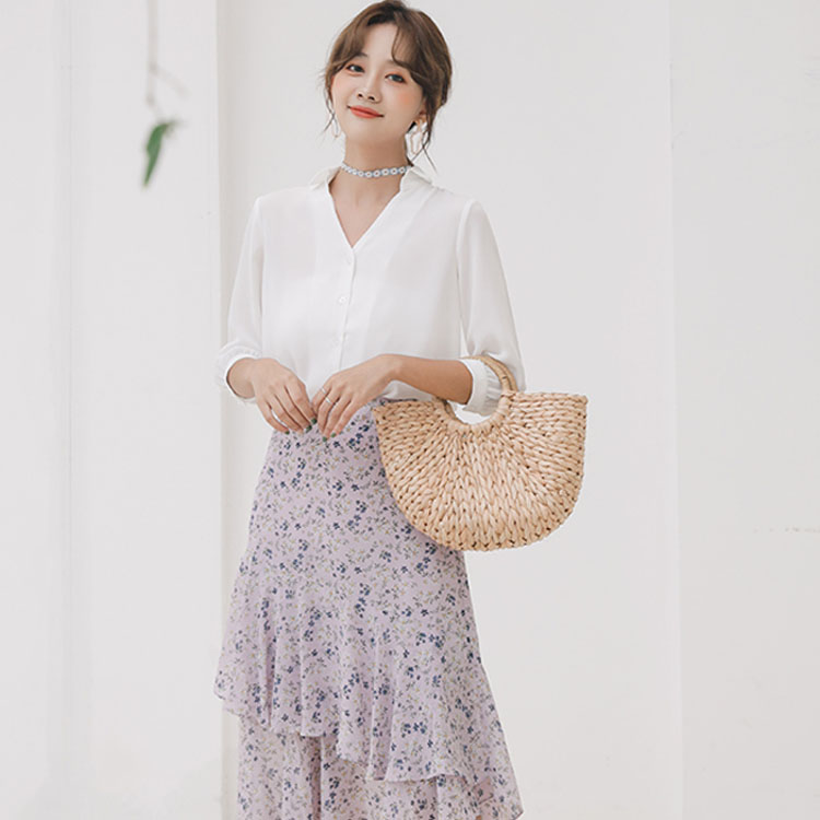 | Vネックでフェイスラインをシャープに魅せてくれます★ 胸元はすっきり見えのスキッパー仕様です★ 落ち感がきれいに見えるよう仕上げたシルエット★ | |