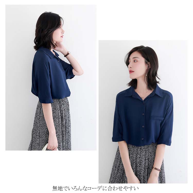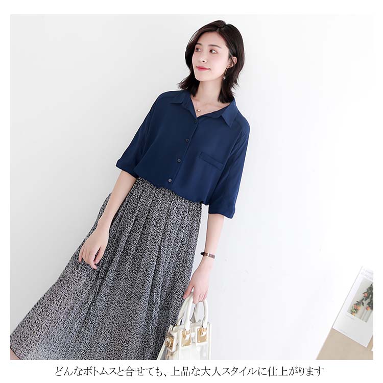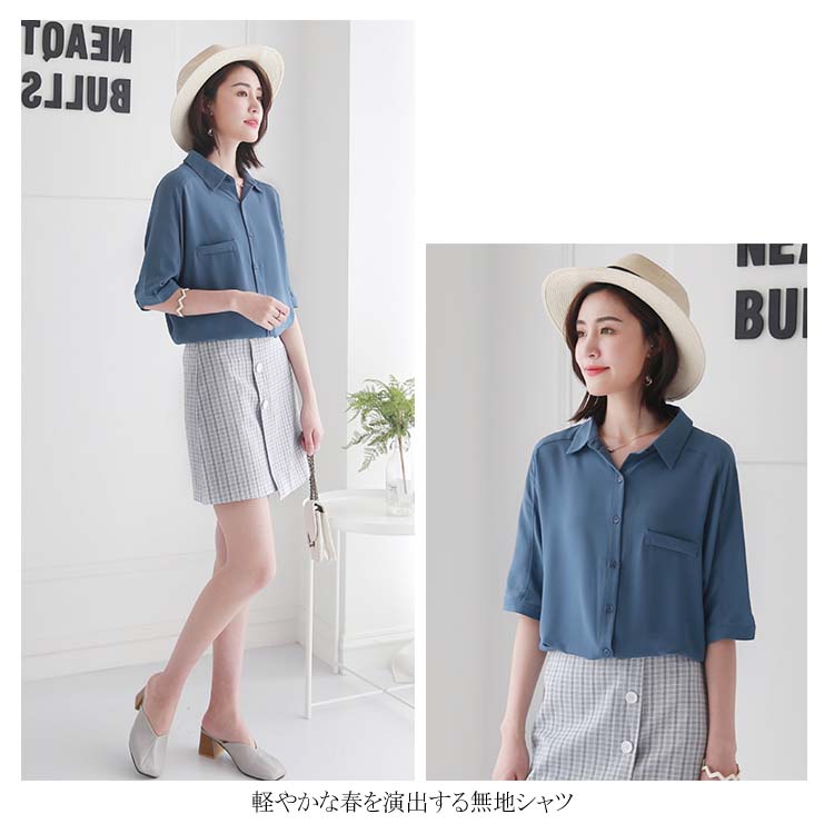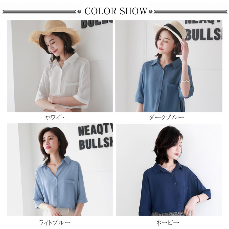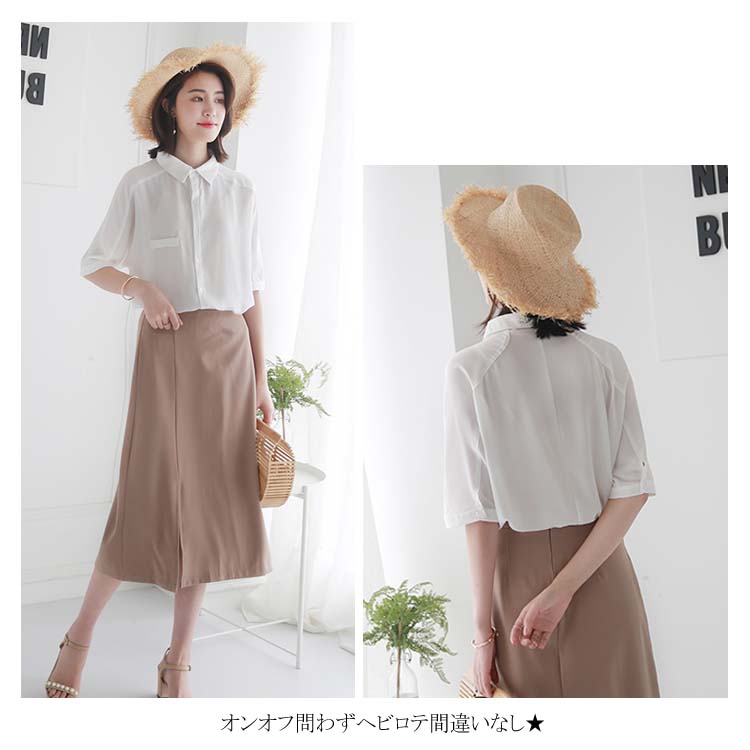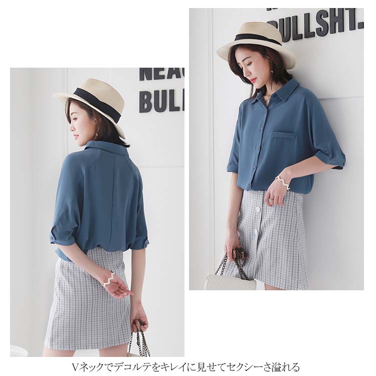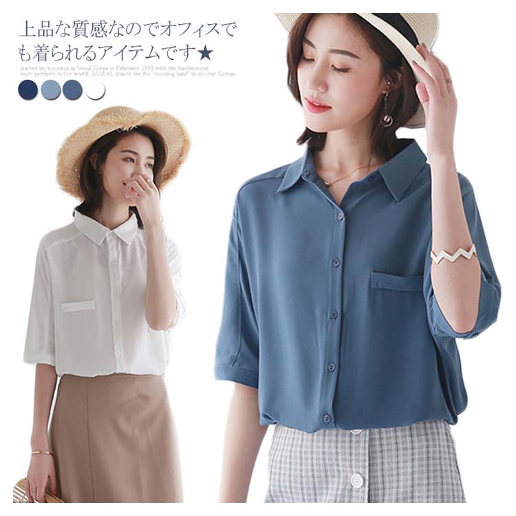 送料無料 ブラウス レディース シフォンブラウス シャツブラウス 五分袖 スキッパーシャツ Vネック 透かしブラウス 無地ブラウス キレイめ こなれ感 フェミニン こなれ感 トップス プルオーバー 春物 夏物 夏新作
