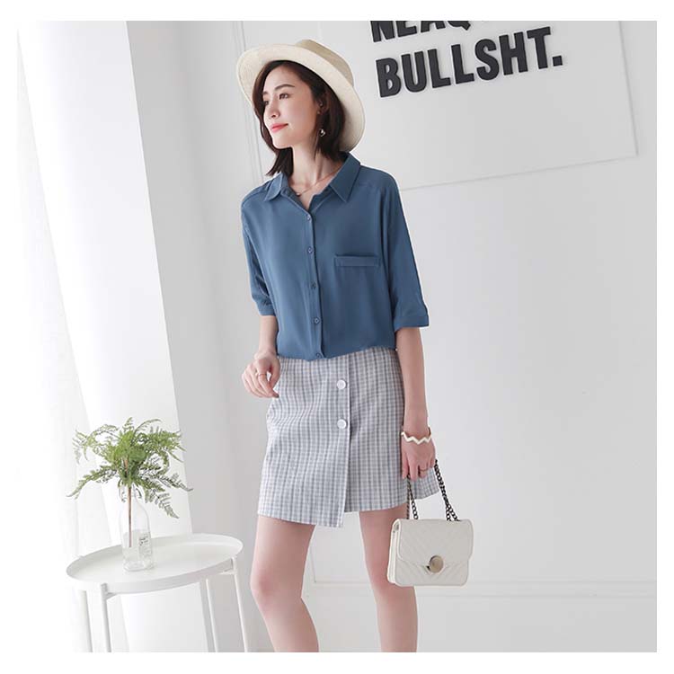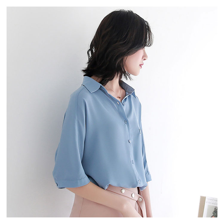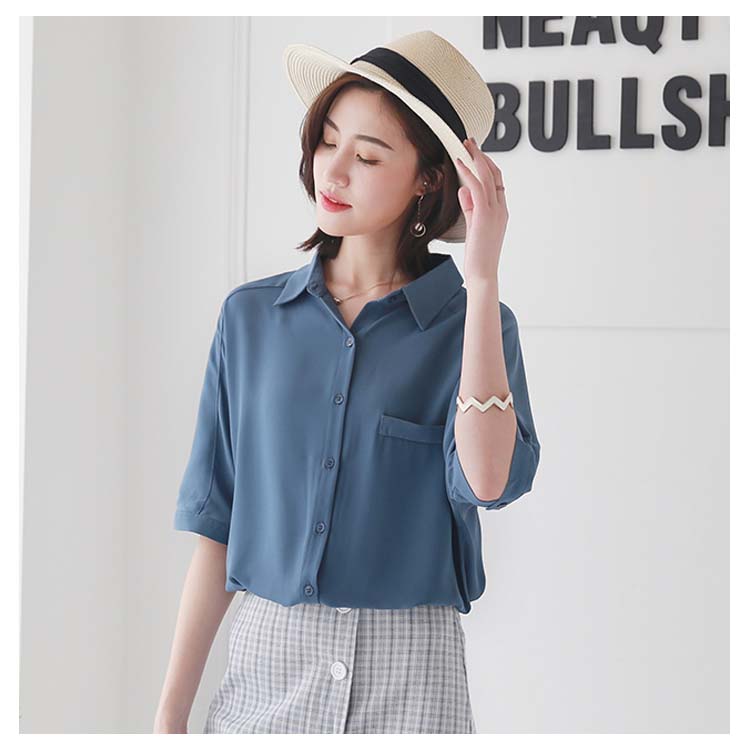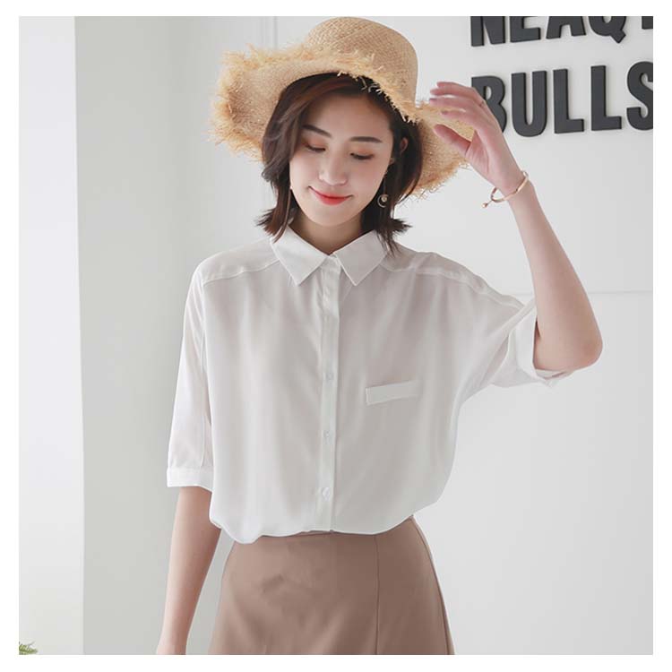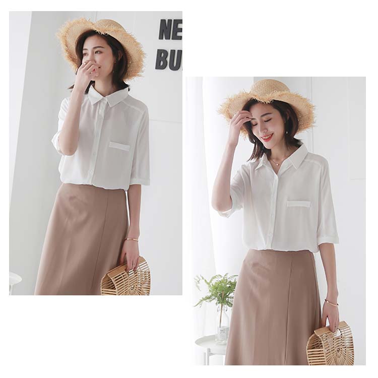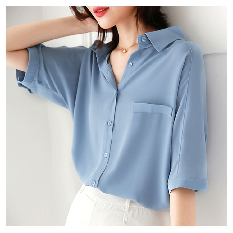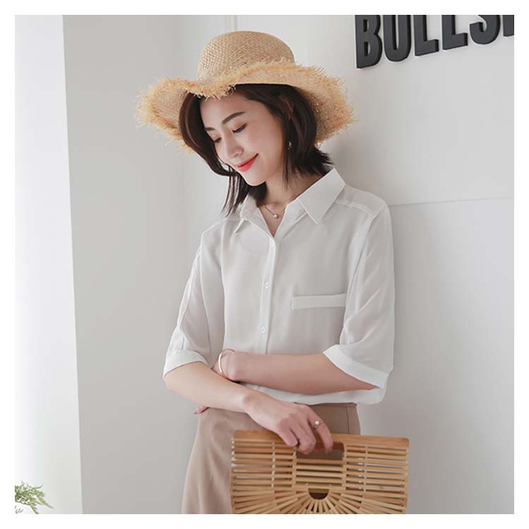 送料無料 ブラウス レディース シフォンブラウス シャツブラウス 五分袖 スキッパーシャツ Vネック 透かしブラウス 無地ブラウス キレイめ こなれ感 フェミニン こなれ感 トップス プルオーバー 春物 夏物 夏新作