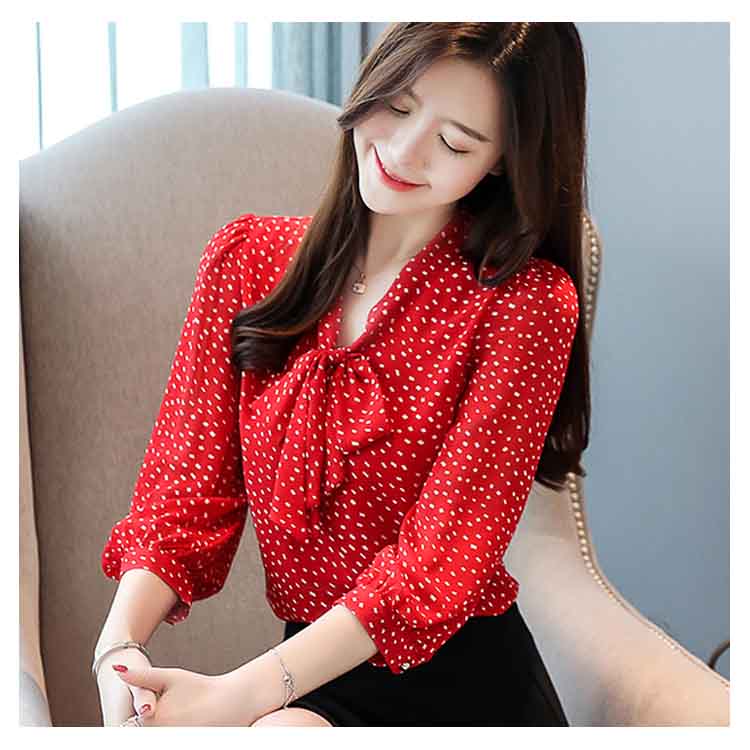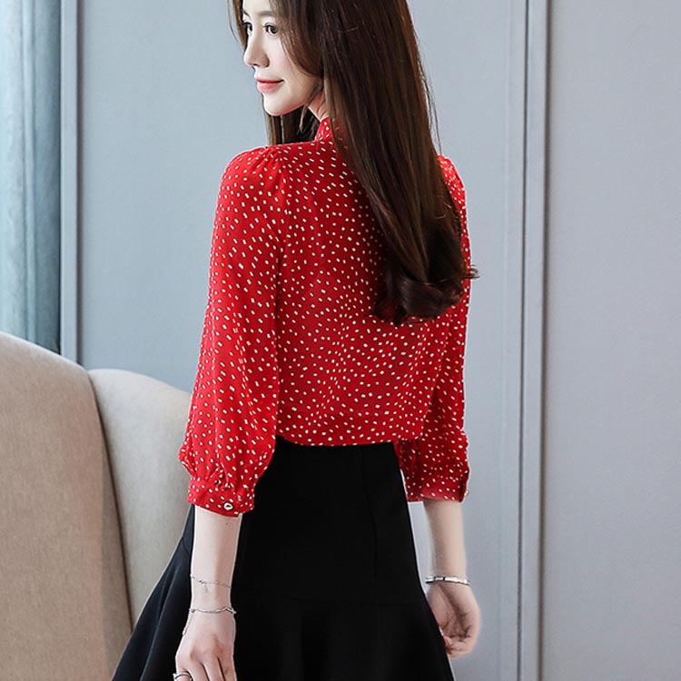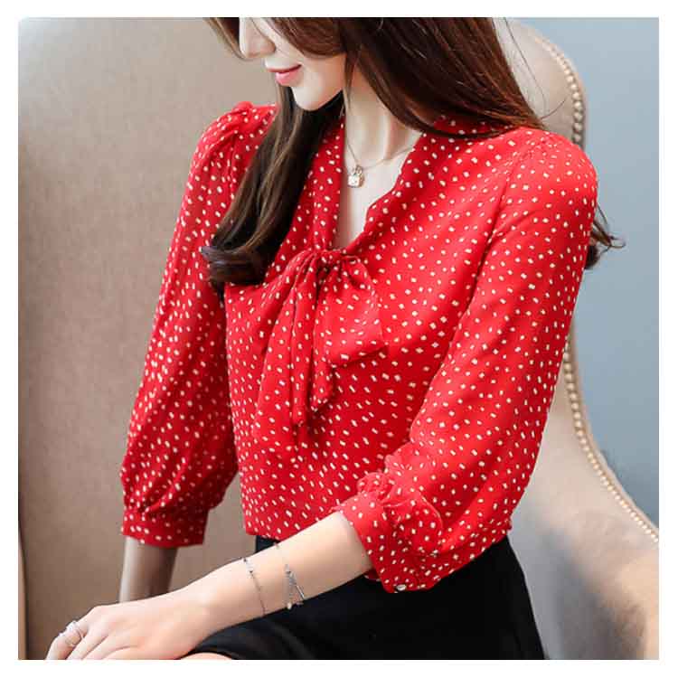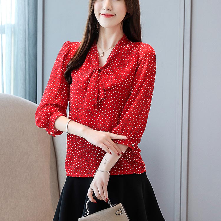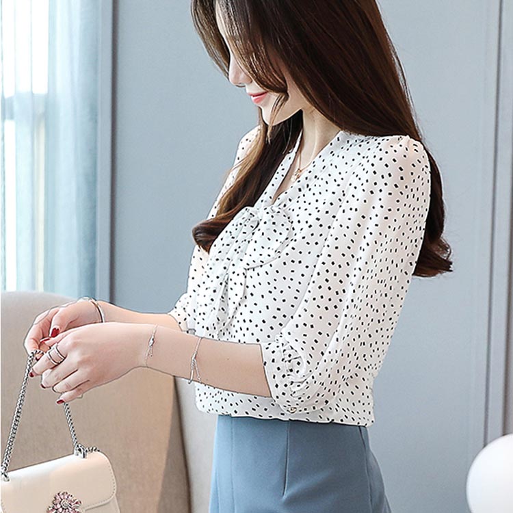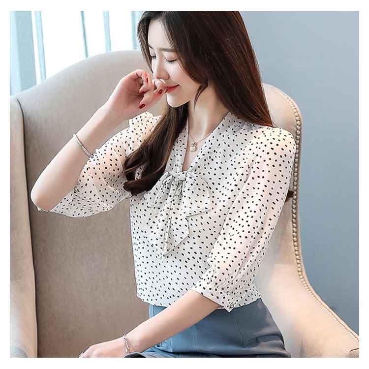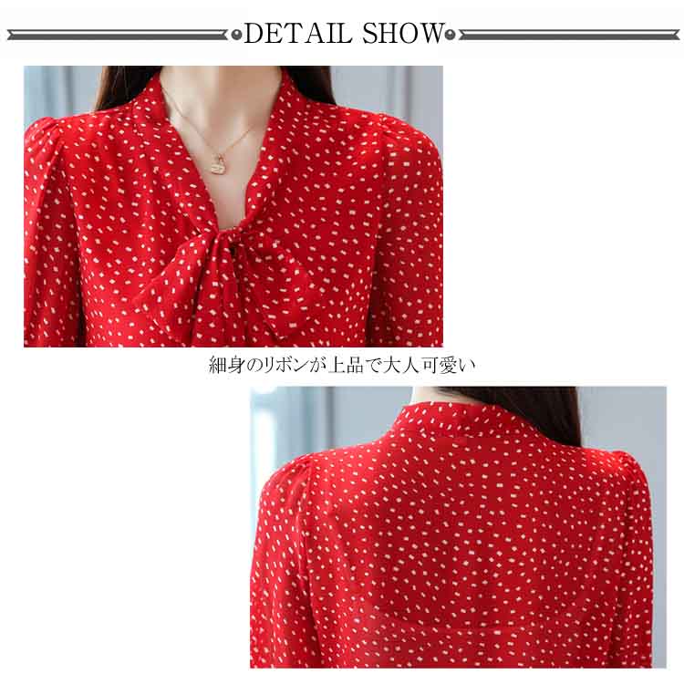 送料無料 シフォンブラウス レディース シャツブラウス 七分袖ブラウス ドット柄 ボウタイ カジュアルブラウス トップス リボン付き カラーバリ お洒落 通勤 上品 大人可愛い エレガント シンプル 夏新作