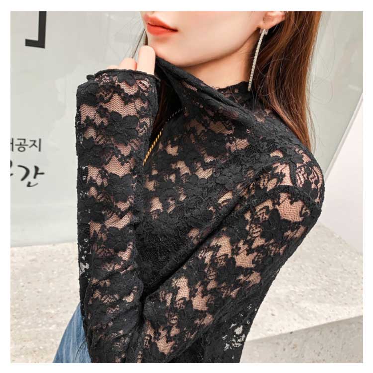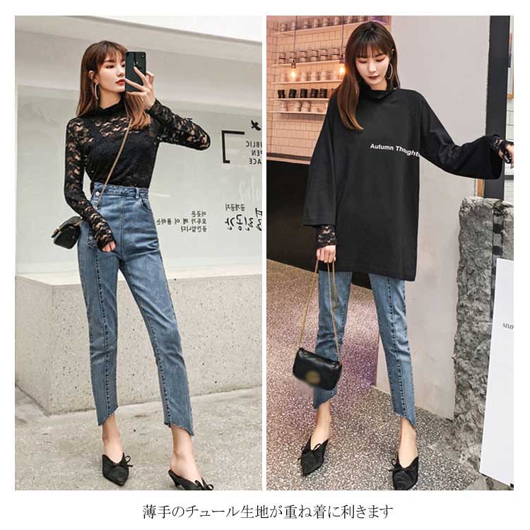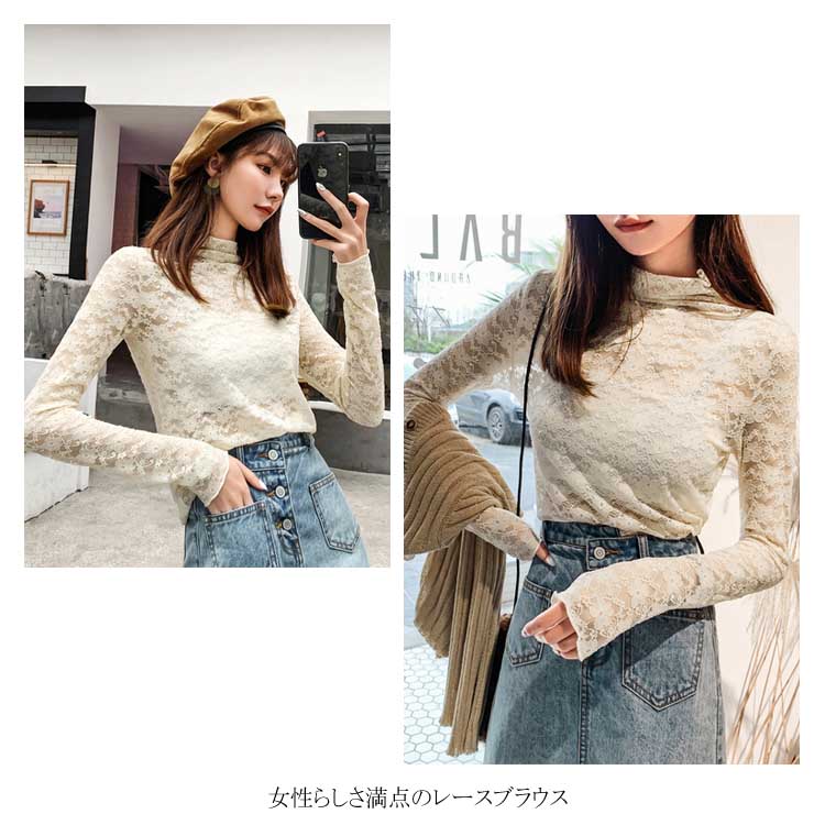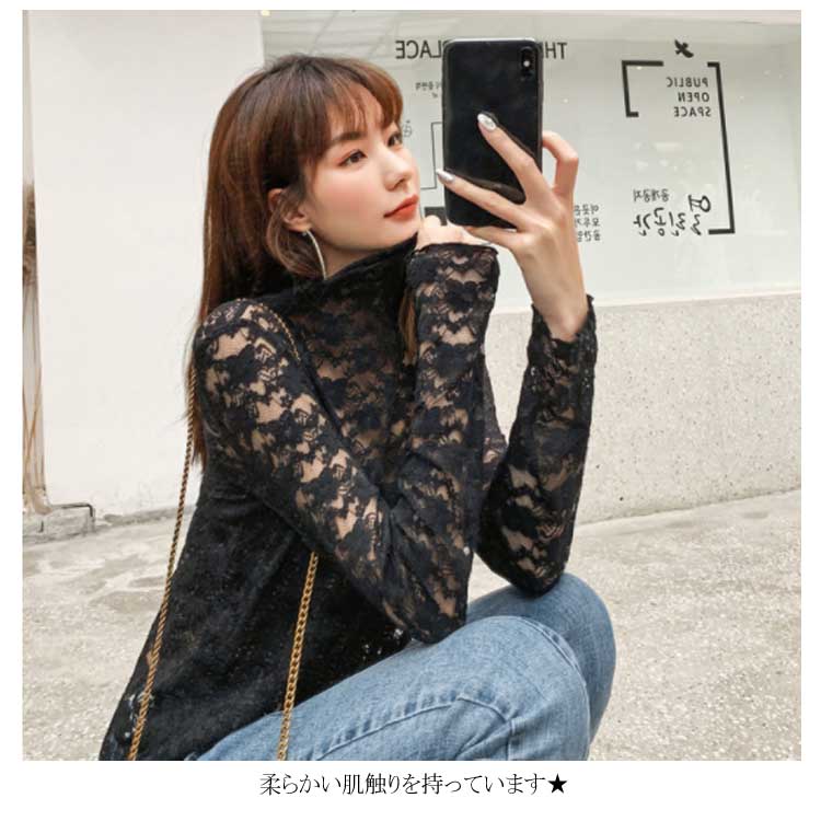 送料無料 ブラウス レディース 長袖ブラウス レースブラウス シフォンブラウス チュール ハイネック 透け感 重ね着 レイヤード 花柄 華やか フェミニン キレイめ セクシー 大人 お洒落 上品 夏新作