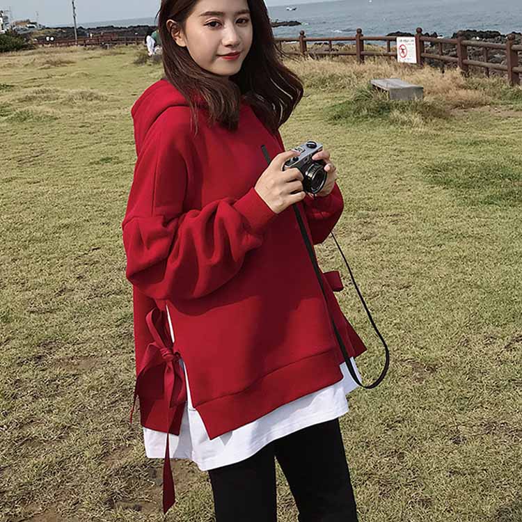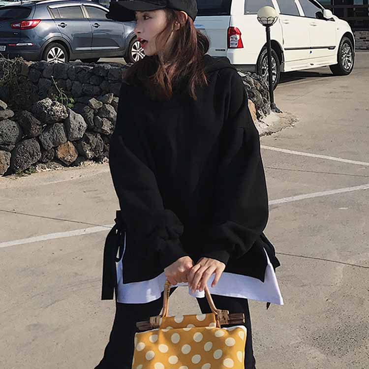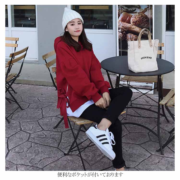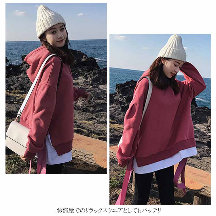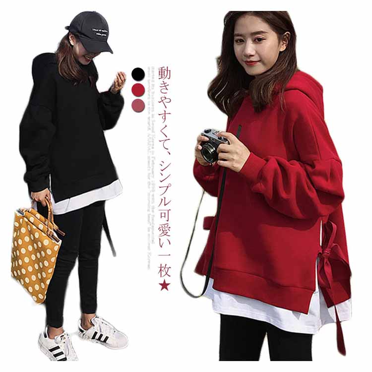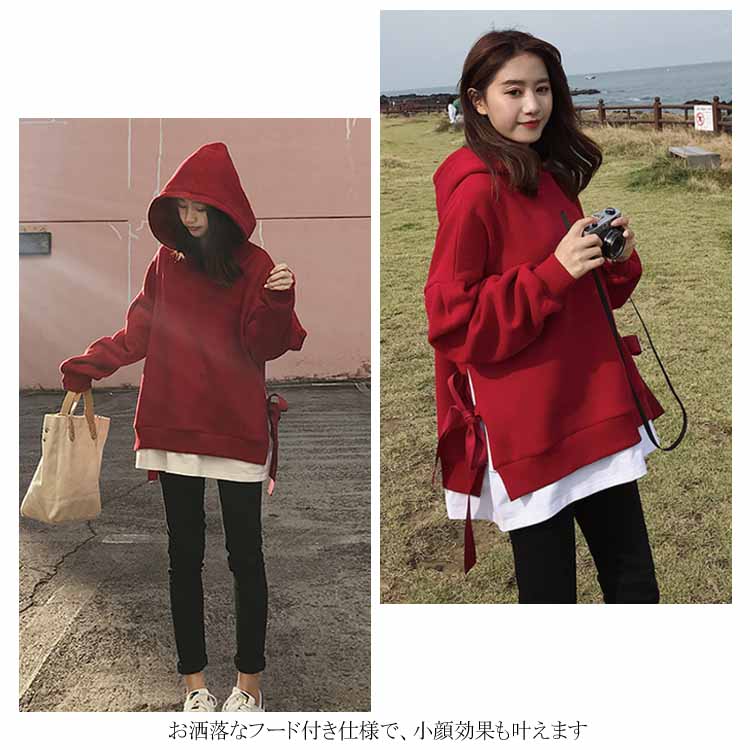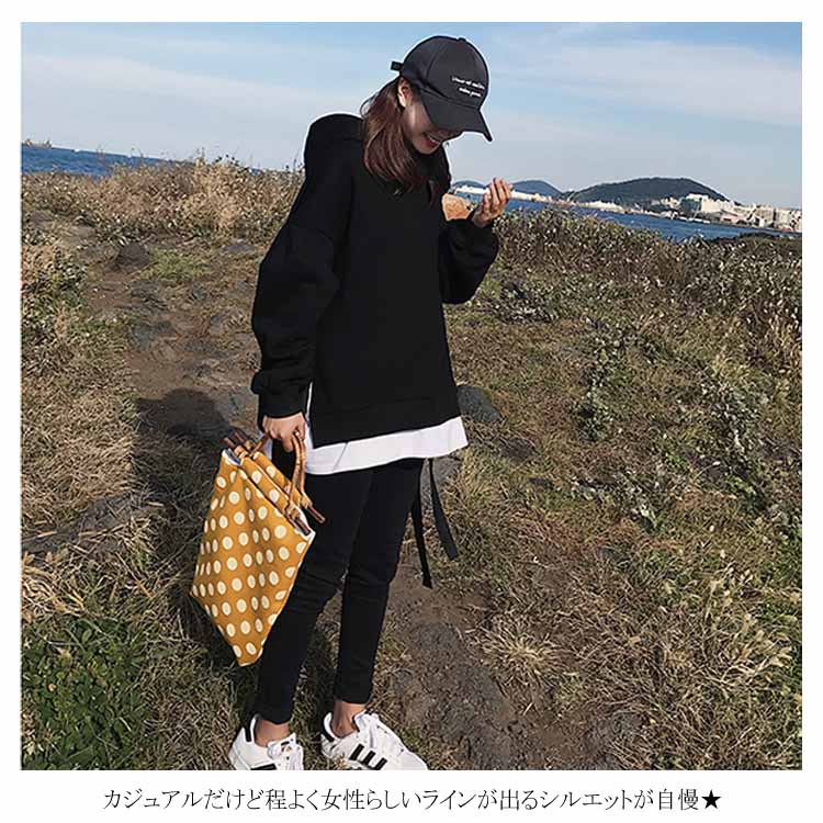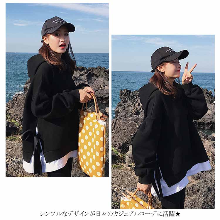 送料無料 パーカー レディース プルオーバー 長袖パーカー 無地パーカー ゆるパーカー フード付きパーカー 切り替え 重ね着 レイヤード ルーズ ゆったり ドロスト付き 大人用 BF風 韓国ファッション シンプル 通勤 20代 30代 人気 夏秋新作