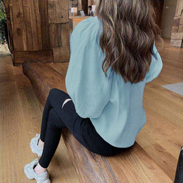 | 上品でフェミニンなイメージを作るシフォンシャツ。 大きなVネックで綺麗な鎖骨を強調、上品な色気をさりげなく醸し出す。 肌に優しい薄手素材で最適な着心地なので、嬉しいポイントです。 ボリューム袖デザインで体型カバー効果抜群。 通勤・デート・パーティー・旅行、幅広い場合で着こなせる一枚。 | |