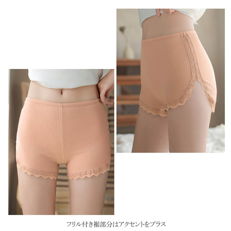 送料無料 インナーパンツ レディース ペチパンツ ショートパンツ ペチパン 肌着 下着 ショーパン ショートタイプ ウエストゴム 透け防止 大きいサイズ フリル裾 無地 夏新作