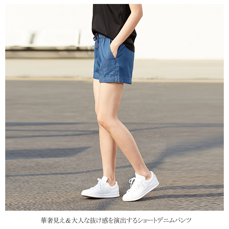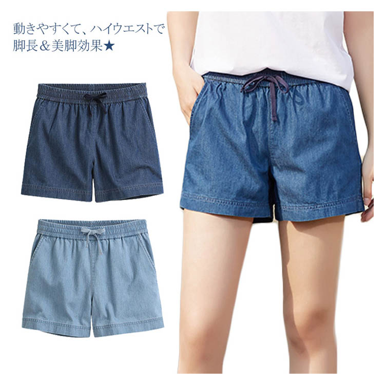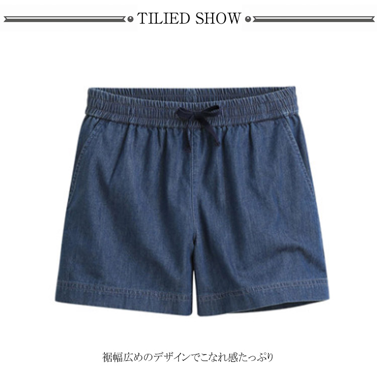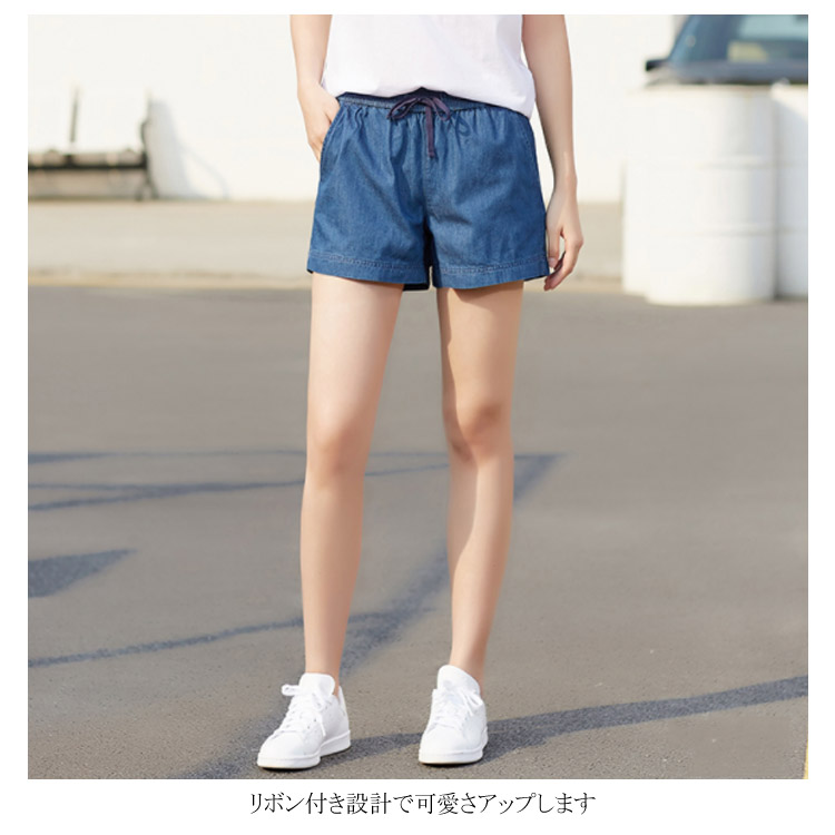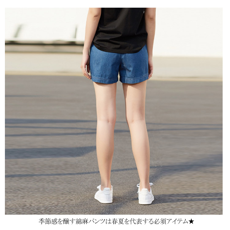 送料無料 ワイドパンツ レディース ガウチョパンツ ショートパンツ デニムパンツ 短パン フレアパンツ カジュアルパンツ 綿麻パンツ ボトムス ハイウェスト ウェストゴム ショート丈 リボン付き ポケット付き 体型カバー 通勤 シンプル 夏新作