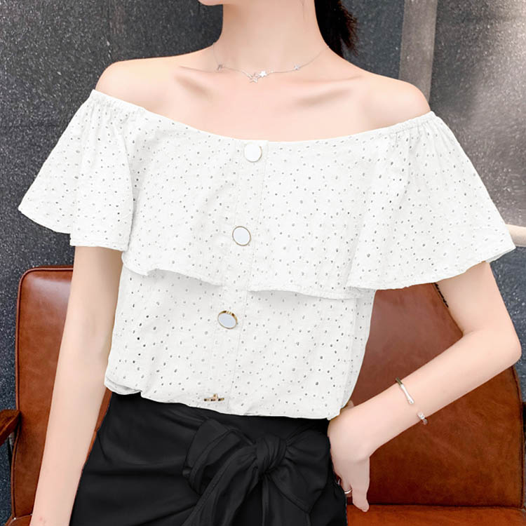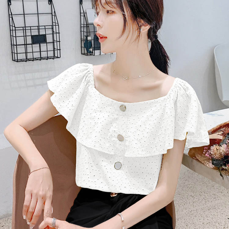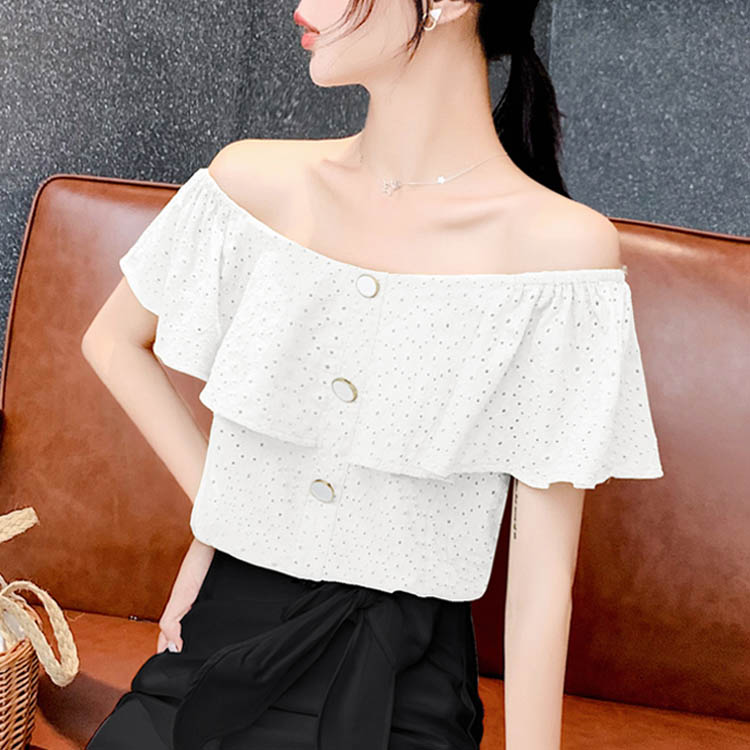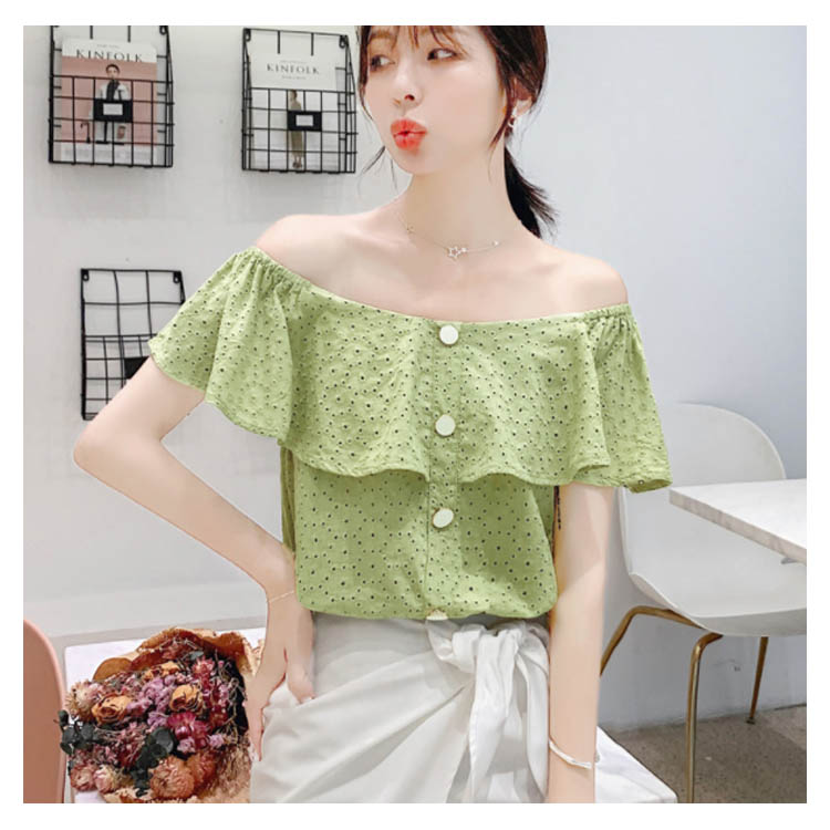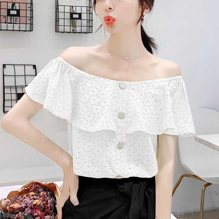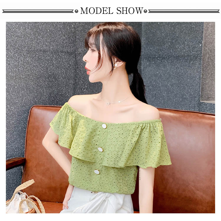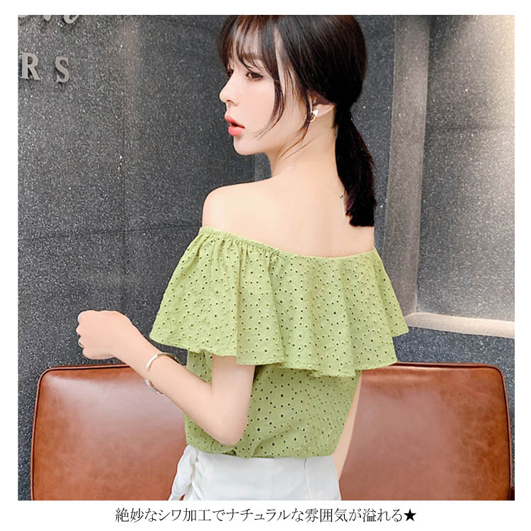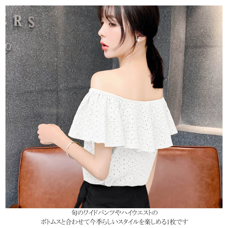 送料無料 オフショルダー レディース シフォンブラウス 半袖 オフショルブラウス シフォン ボタン付き フリル ボリュームスリーブ 薄手 ゆったり お洒落 キレイめ こなれ感 大人 トップス 春夏 夏新作