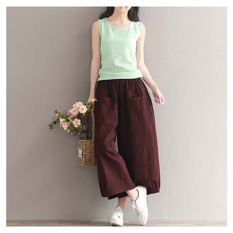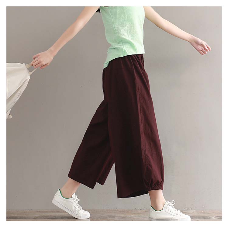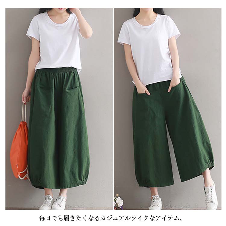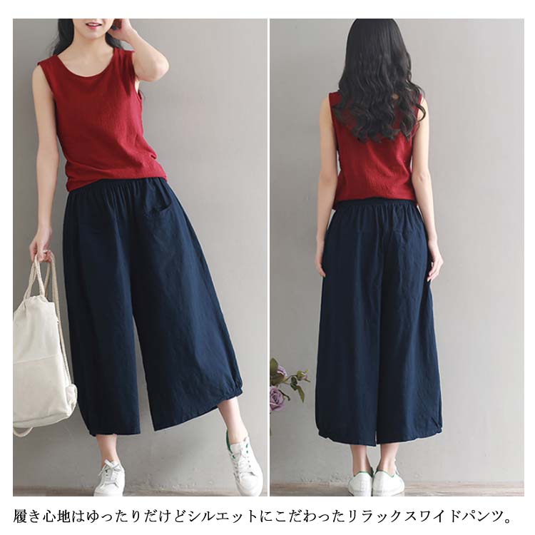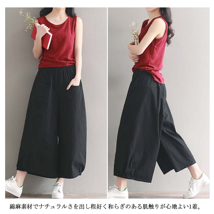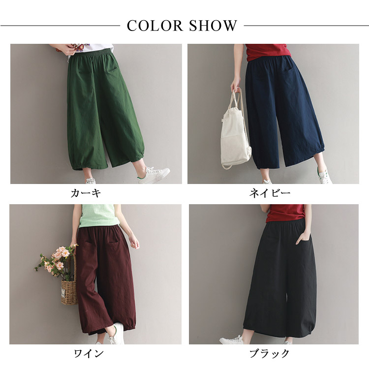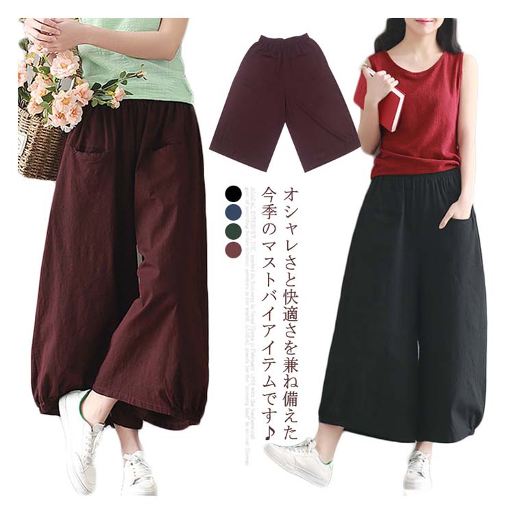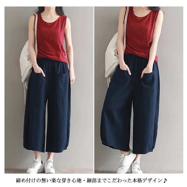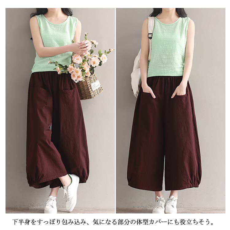 ガウチョパンツ ワイドパンツ レディース リネン ワイドパンツ リネンパンツ サルエルパンツ 9分丈 ワイドパンツ 綿麻 パンツ クロップドパンツ リラックス パンツ