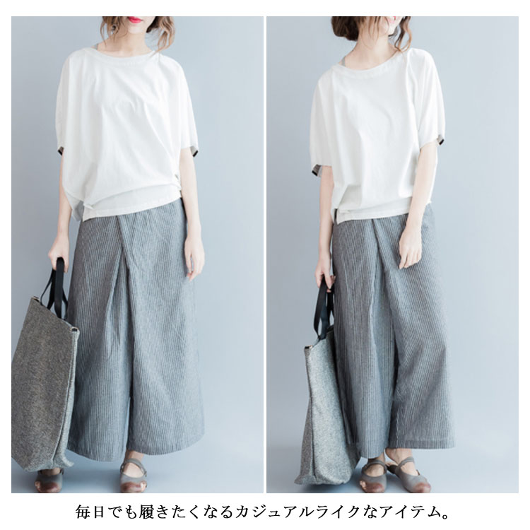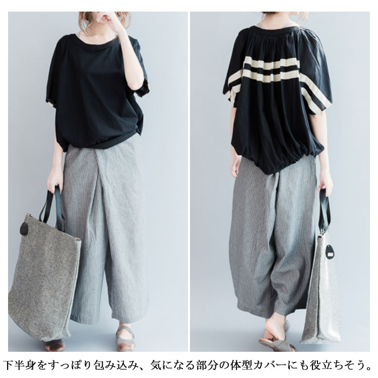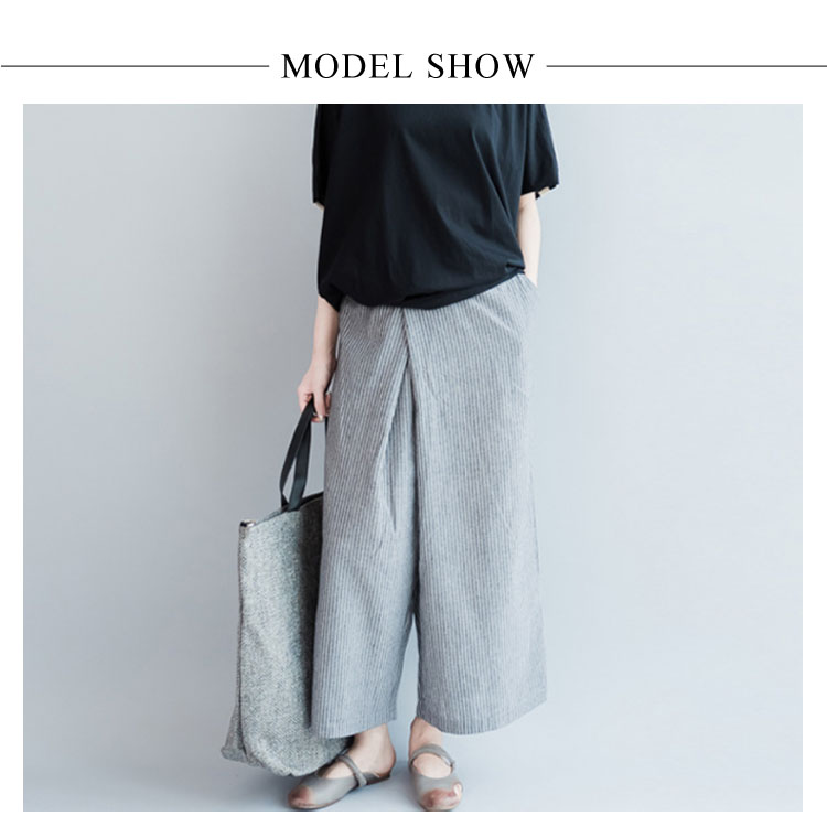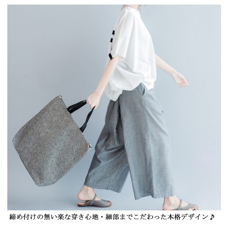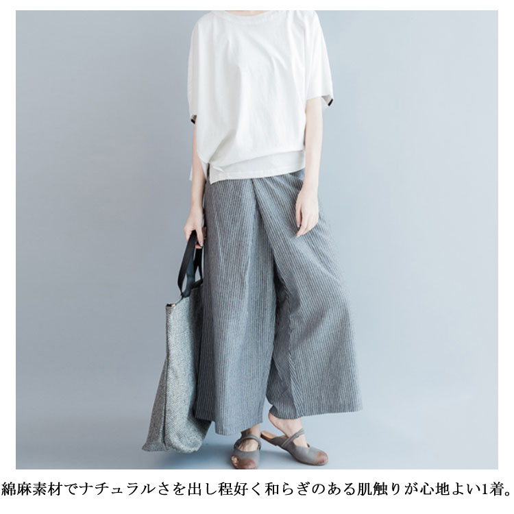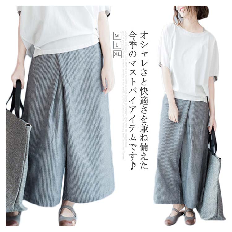 ストライブ柄 パンツ ガウチョパンツ ワイドパンツ レディース リネン ワイドパンツ リネンパンツ サルエルパンツ 9分丈 ワイドパンツ 綿麻 パンツ クロップドパンツ リラックス パンツ