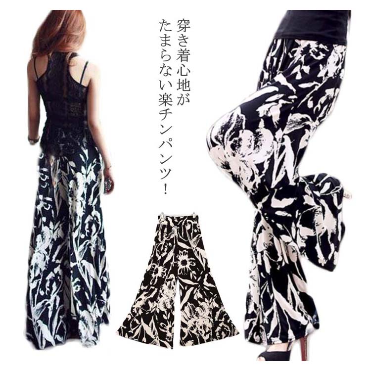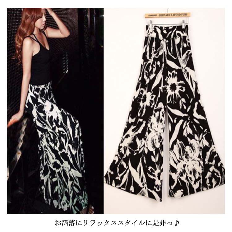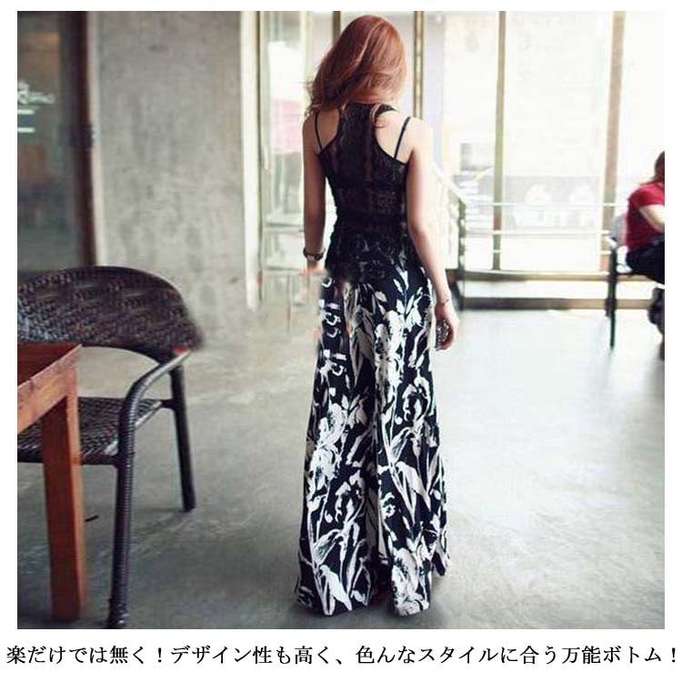 花柄 ガウチョパンツ ボタニカル ワイドパンツ レディース ガウチョ マキシ丈 ワイド ロング パンツ スカーチョ 花柄 体型カバー ボトムス