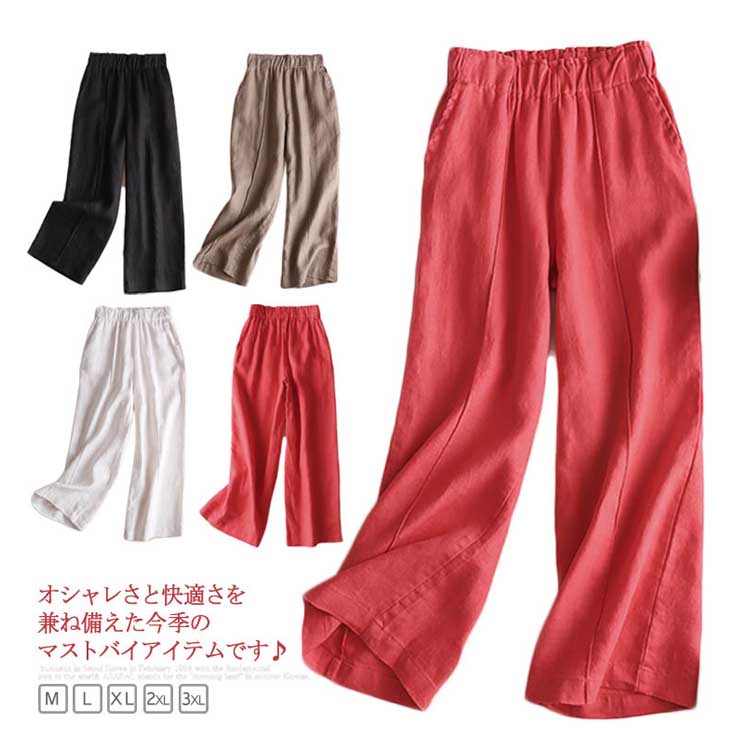 パンツ リネン ワイドパンツ ガウチョパンツ ワイドパンツ レディース リネンパンツ サルエルパンツ 9分丈 ワイドパンツ 綿麻 パンツ クロップドパンツ リラックス パンツ