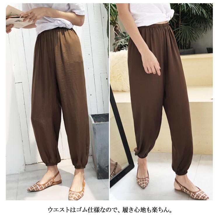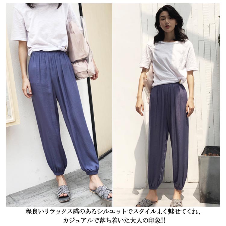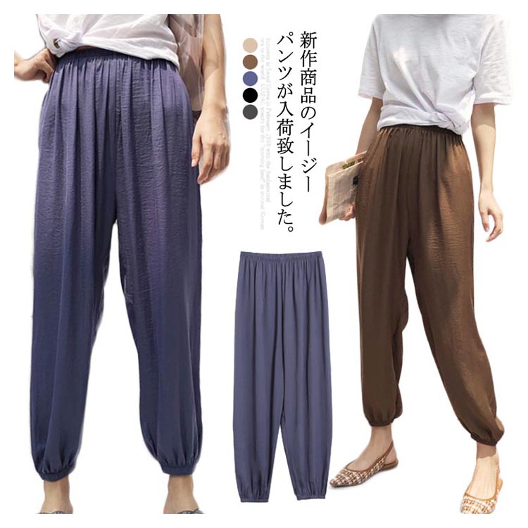 サルエルパンツ イージーパンツ リラックス パンツ 9分丈 パンツ ジョガーパンツ レディース アンクルパンツ ウエストゴム 美脚効果 通気性 薄手 涼しい
