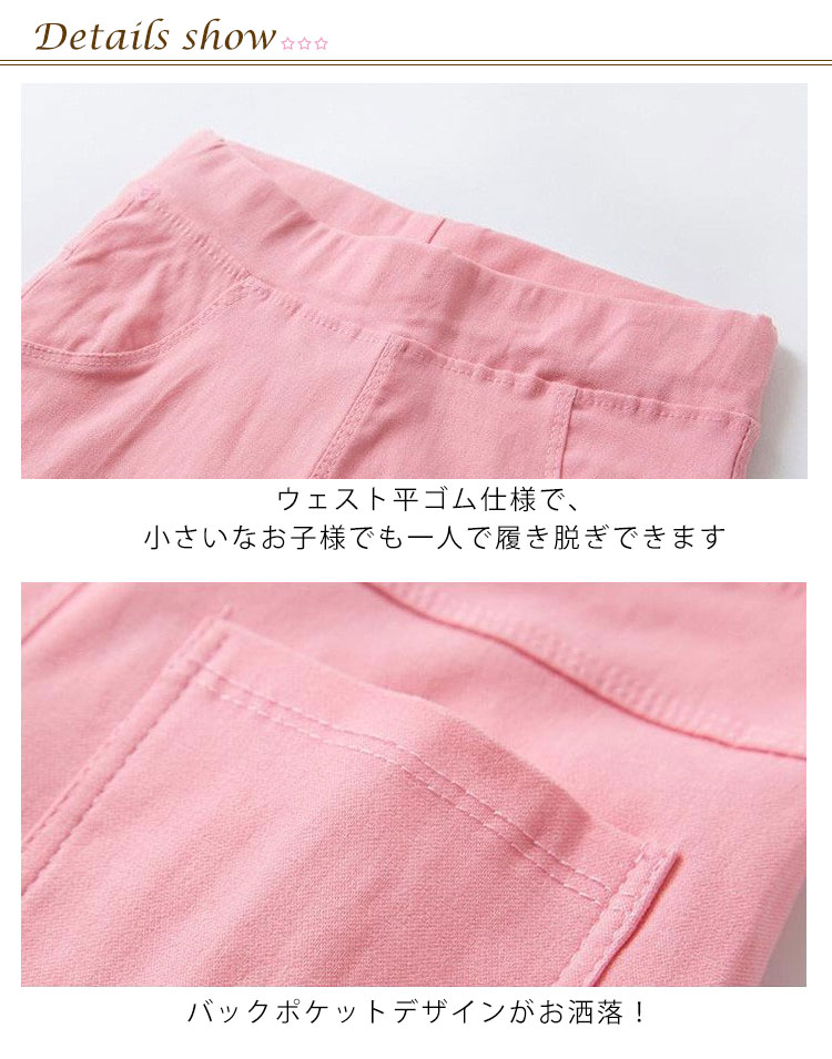 | いつでも細見え実現のストレッチスキニーパンツが登場しました。 のびのび伸縮性に優れ、動き回るお子様にピッタリです。 柔らかくて、しっかりした生地で、履き心地も良く、オールシーズン活躍する間違いなしです。 シンプルベーシックなデザインで、どんなトップスとも相性抜群、1枚持っているととっても便利です。 カラバリエーション豊富!ベーシックカラーから差し色カラーまで取り揃えて、色違いで持っておきたくなりますね。 | |