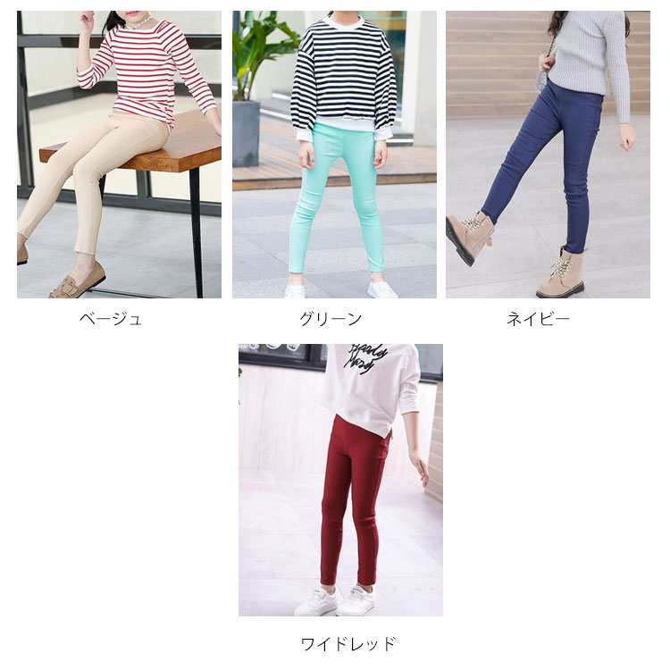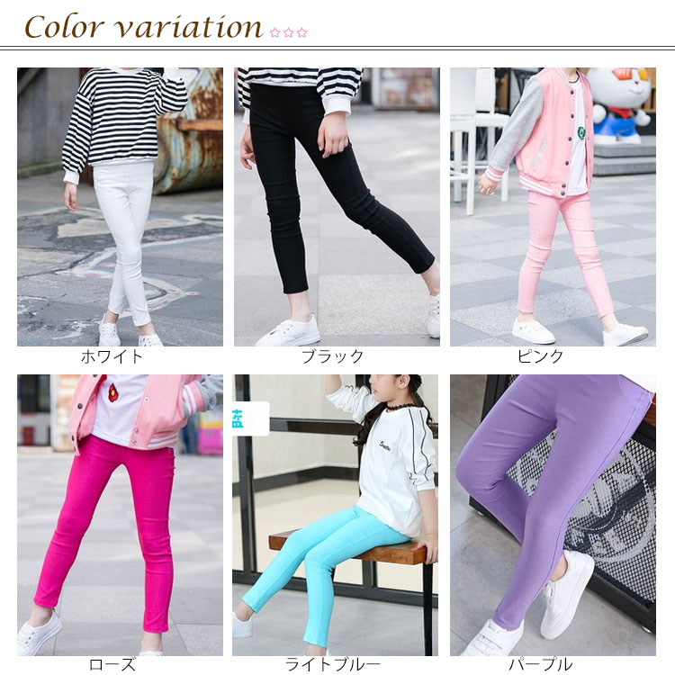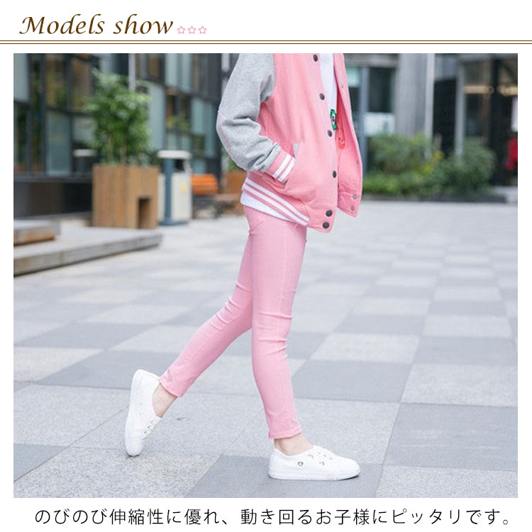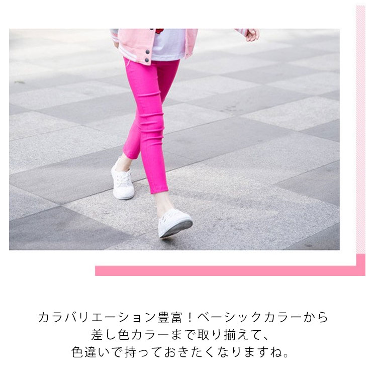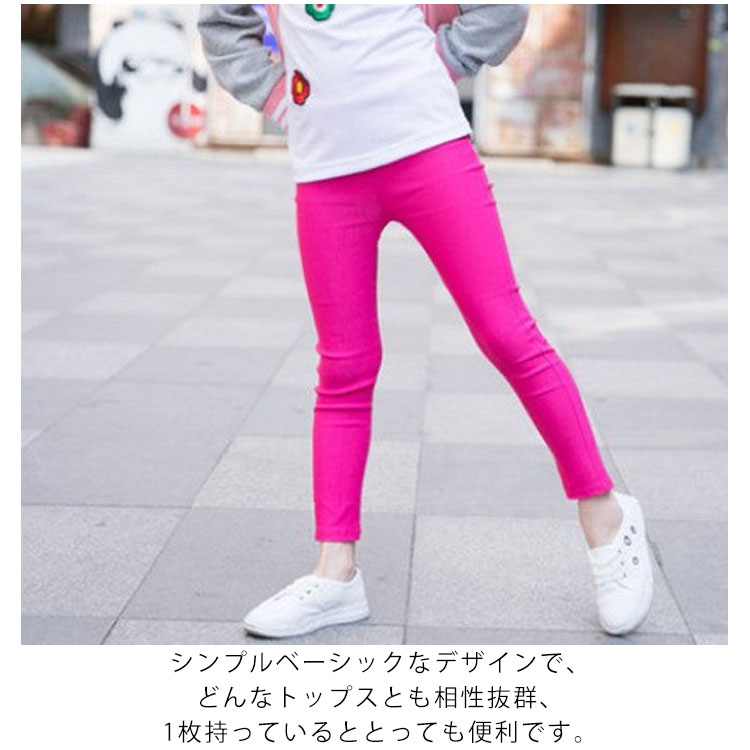 送料無料 全10色! 子供服 スキニーパンツ タイト パンツ ストレッチ ロングパンツ キッズ 女の子 ストレッチパンツ レギンス ガールズ ボトムス 幼稚園 小学生 無地 カラフル ストレッチスキニーパンツ ダンス 春秋 夏 プチプラ