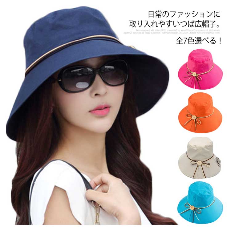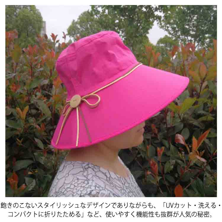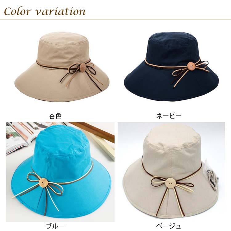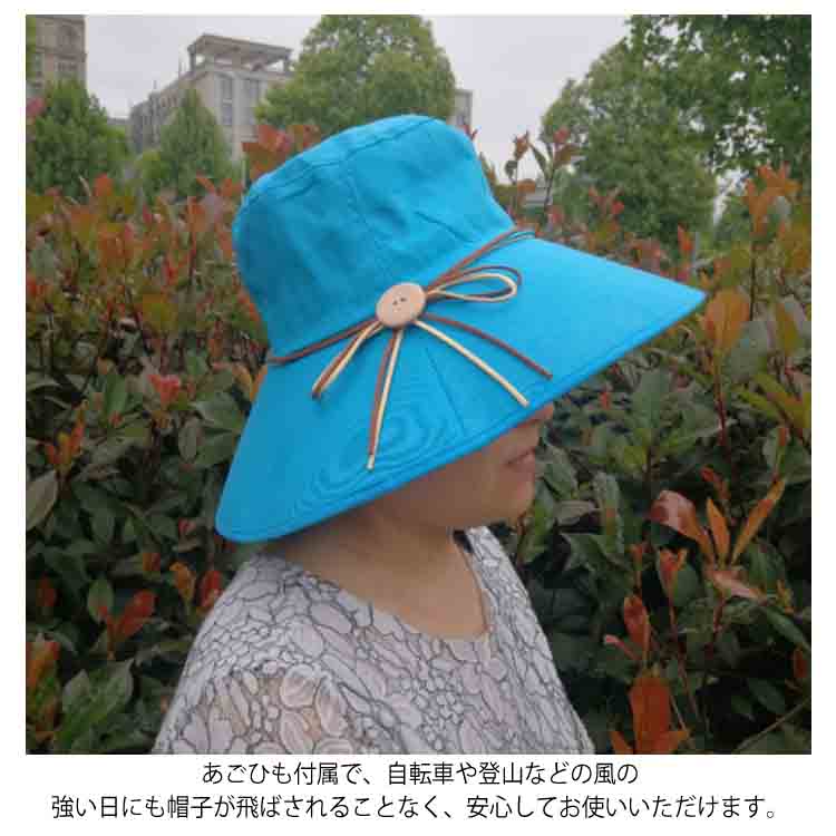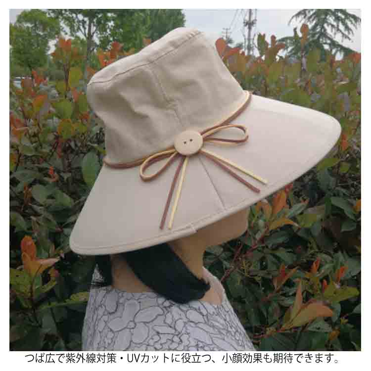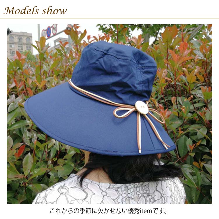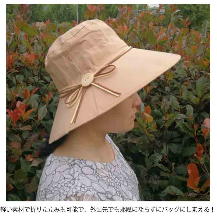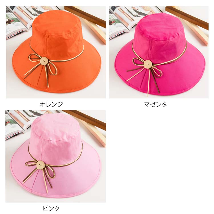 《送料無料》全7色選べる!帽子 レディース 夏 木製ボタン リボン風 つば広帽 折り畳める UVカット帽子 つば広 女優帽 日焼け防止 旅行 おしゃれ ファッション雑貨
