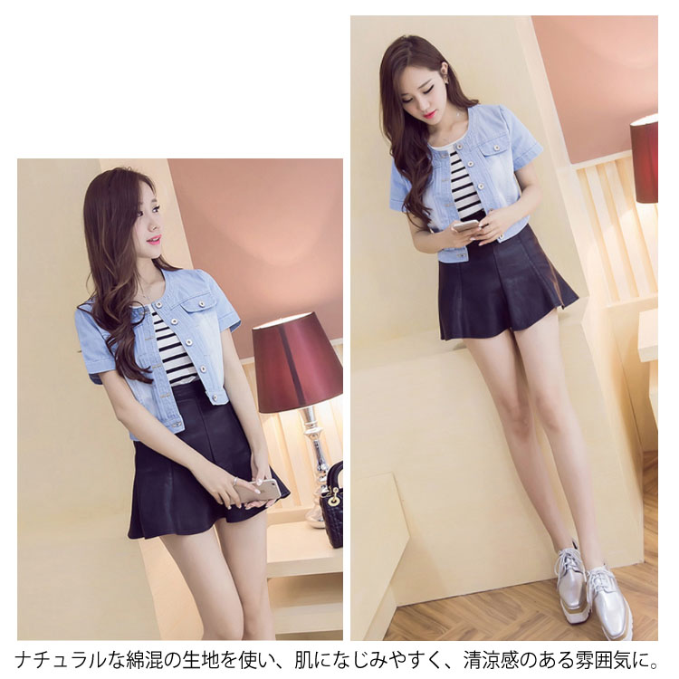 《送料無料》S-XXLサイズ!デニムポレロ ノーカラージャケット デニムジャケット 半袖ジャケット Gジャン デニム ポレロ ショート丈 ジャケット ノーカラー 半袖 羽織り 春 夏