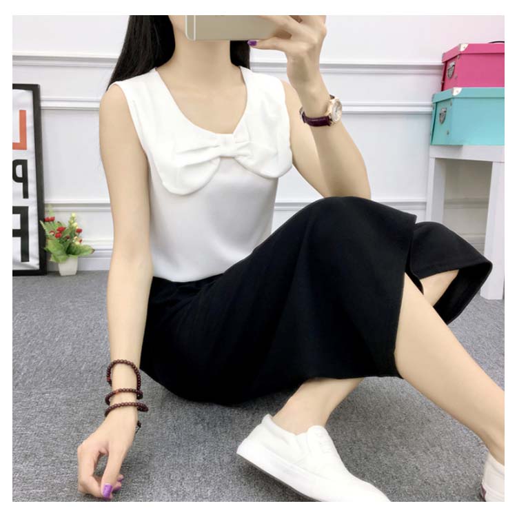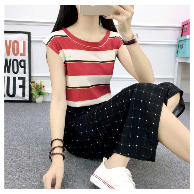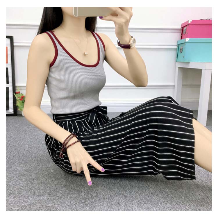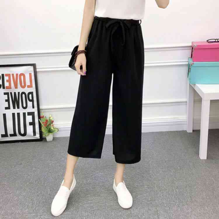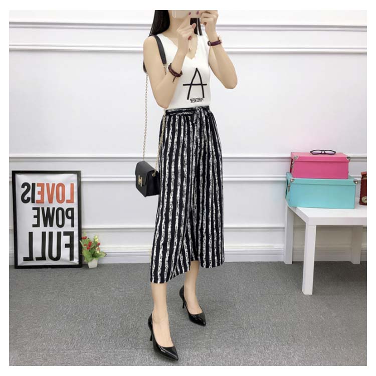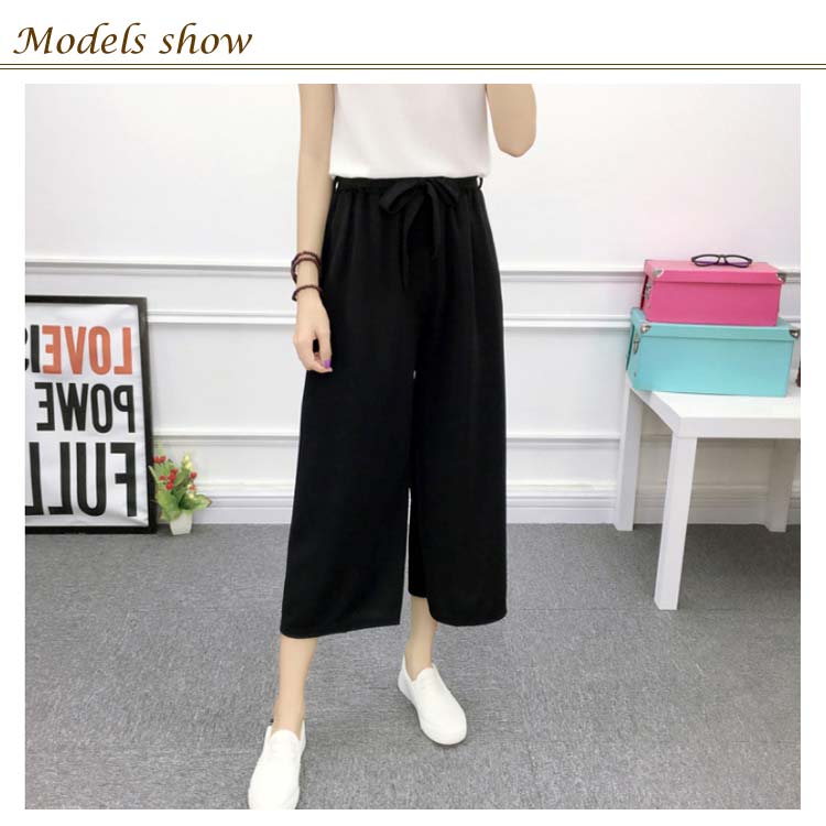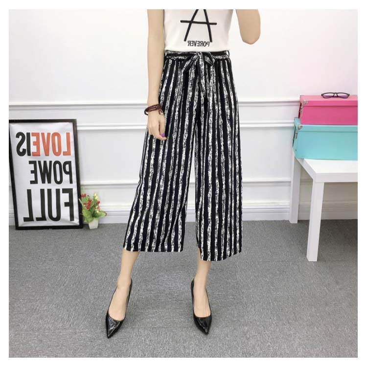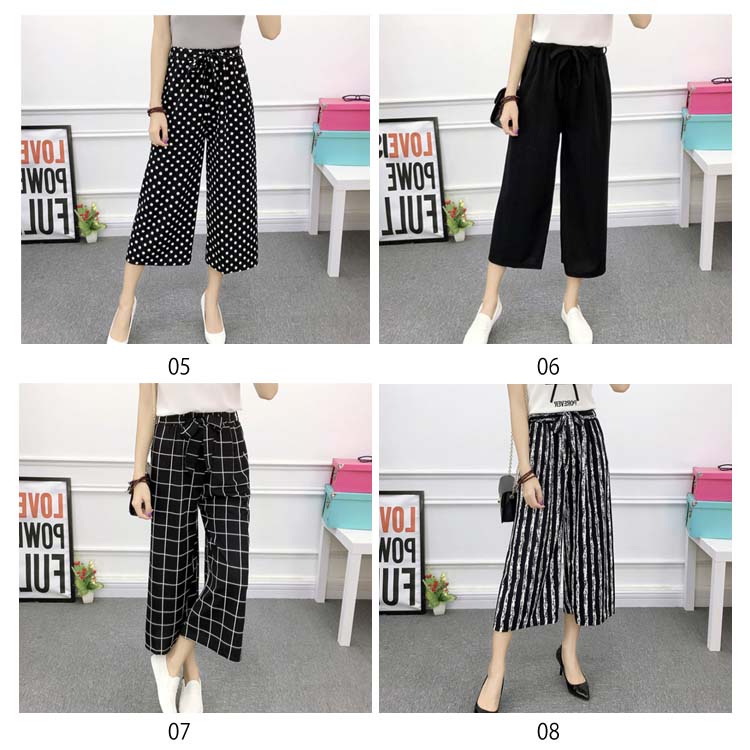 《送料無料》全8パターン!ウエストリボン付き ワイドパンツ ストライプ柄 ドット柄 チェック柄 無地 ガウチョパンツ 7分丈 ガウチョ パンツ 薄手 美脚 リラックス カジュアル キレイめ