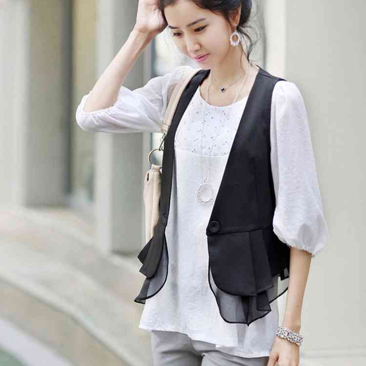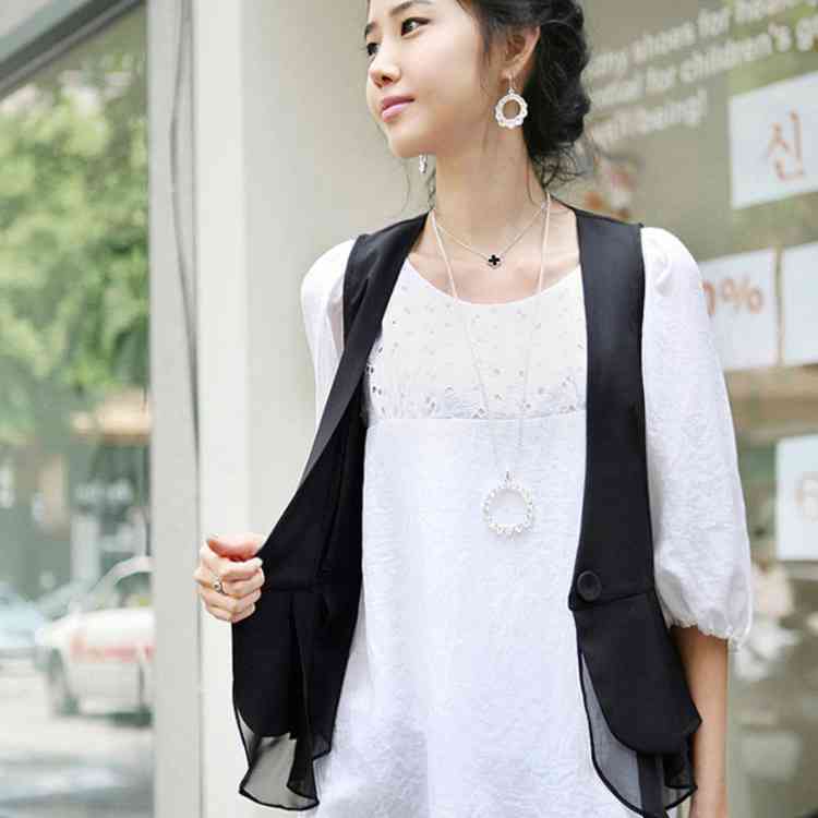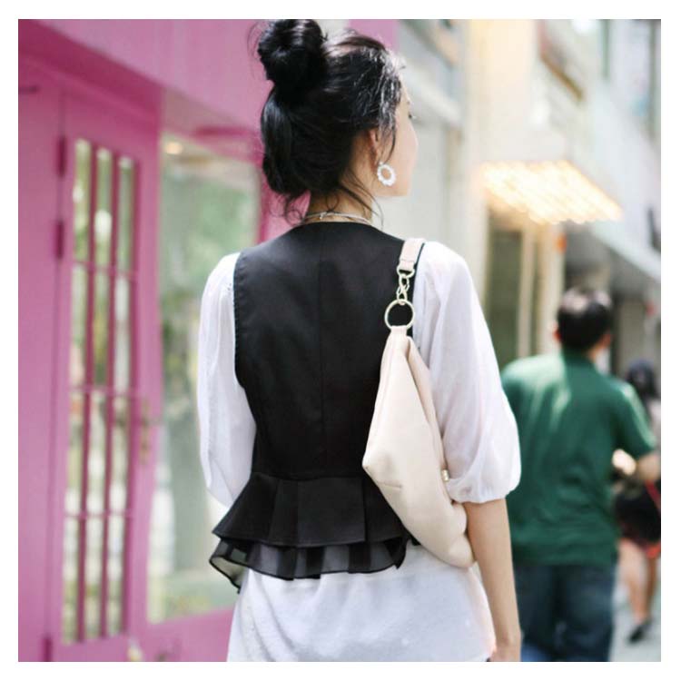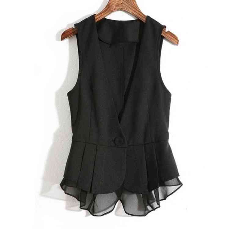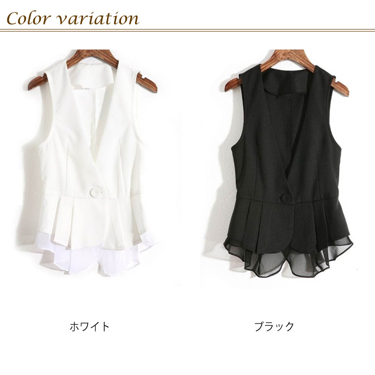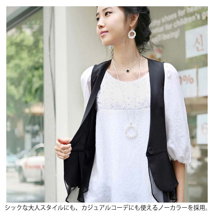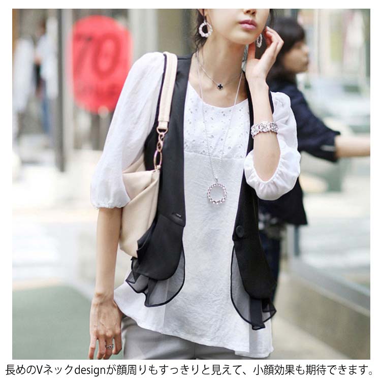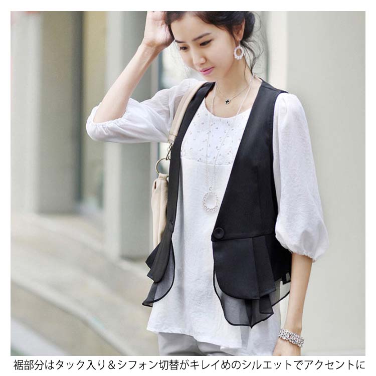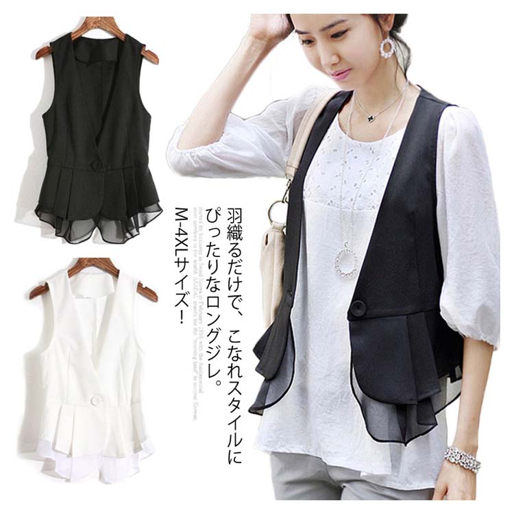《送料無料》M-4XLサイズ!シフォン切替ベスト レディース ベスト ジレベスト ジレ アウター Vネック 羽織り サマージャケット ノースリーブ サマー 切り替え 大きサイズ 黒