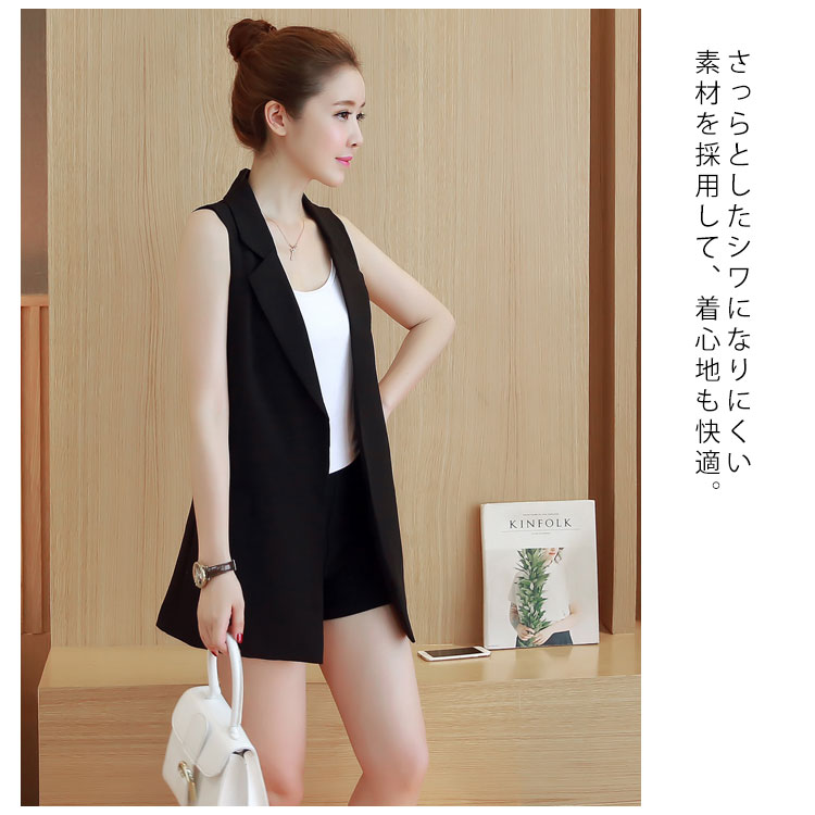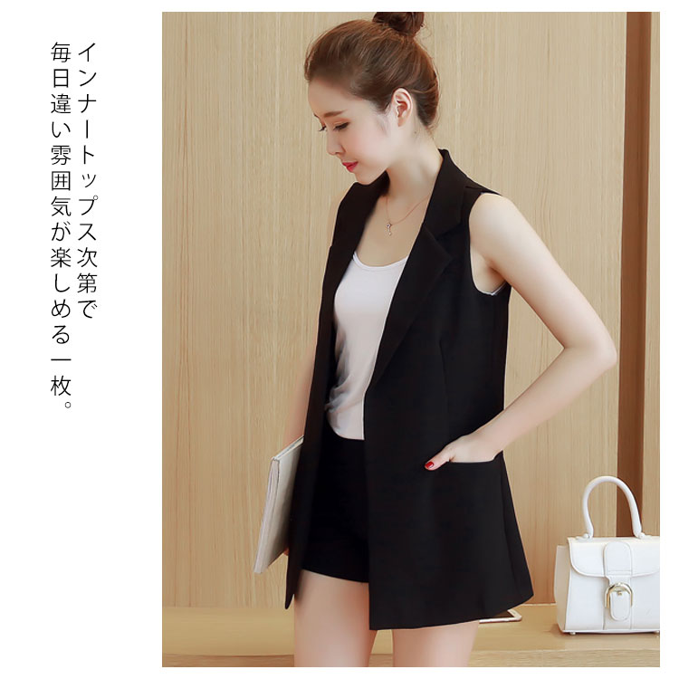 《送料無料》全2色×5サイズ!ロングベスト レディース サマー ベスト ジレベスト サマージャケット ノースリーブトップス 羽織物 ライトアウター Vネック ノースリーブ スリム 黒 白