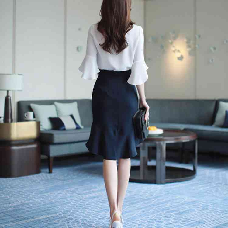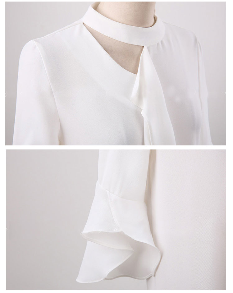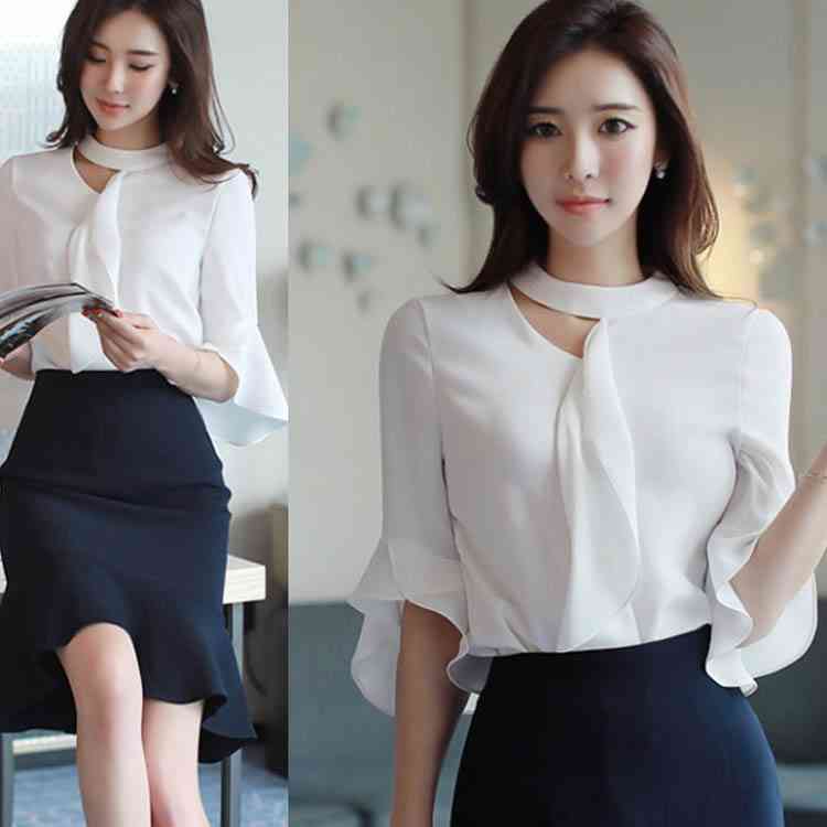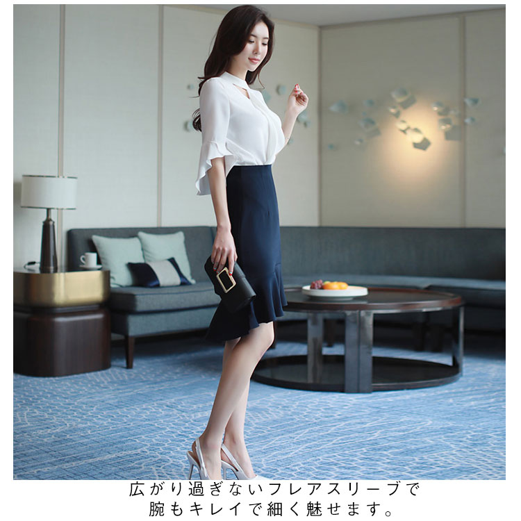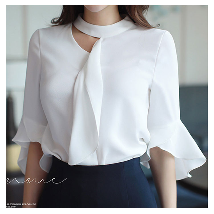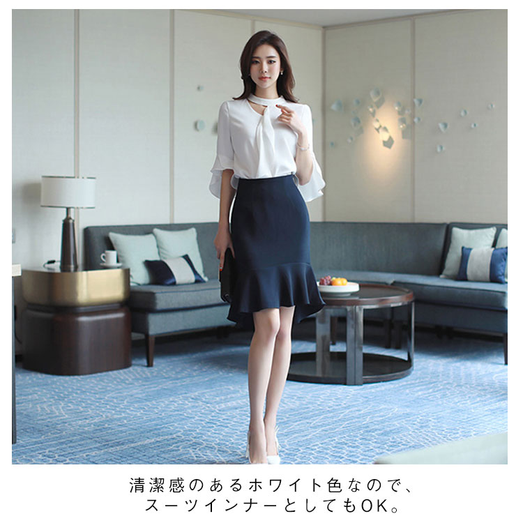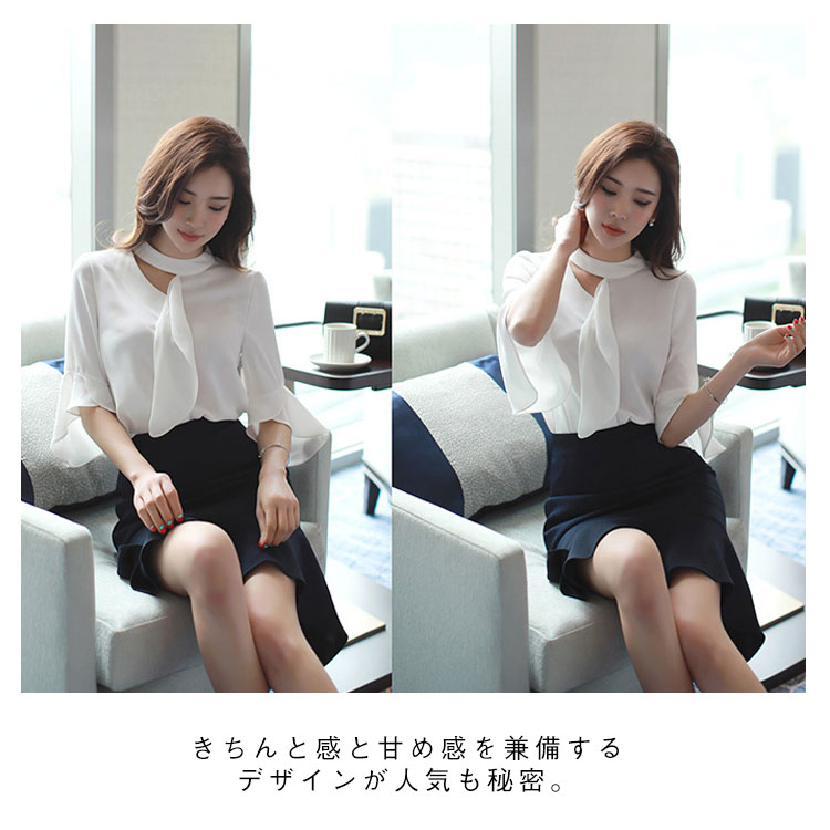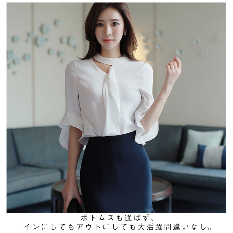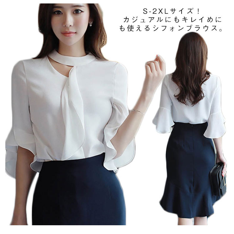 《送料無料》S-2XLサイズ!シフォンブラウス レディース シャツ ブラウス トップス フレア袖 フレアスリーブ 五分袖 シフォントップス スーツインナー 通勤 オフィス キレイめ 春 夏 白