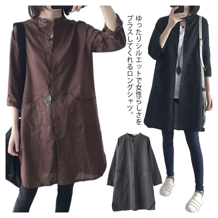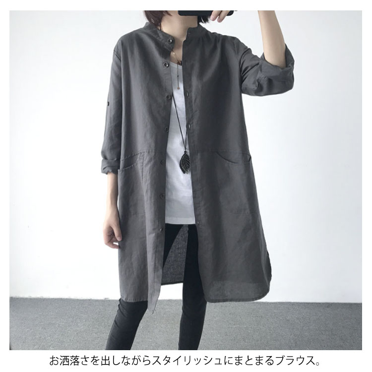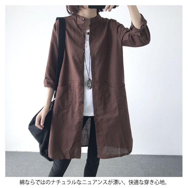 送料無料 シャツ 長袖 ロングシャツ リネン 綿 ライトアウター 羽織る トップス レディース ロング丈 カジュアル ゆったり 春 秋 お洒落 アウター 新作
