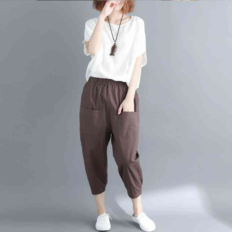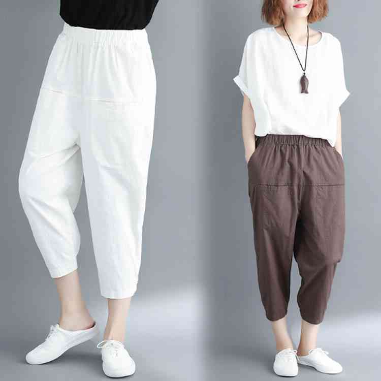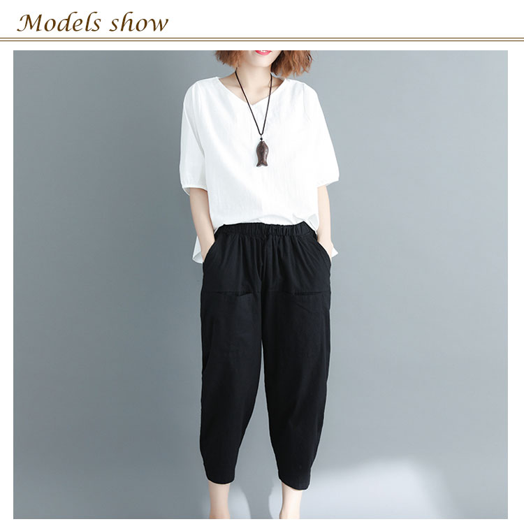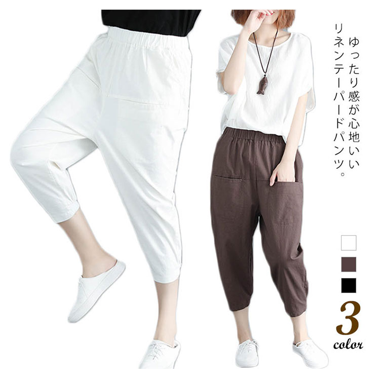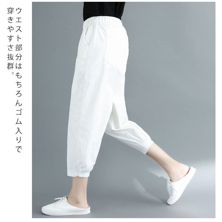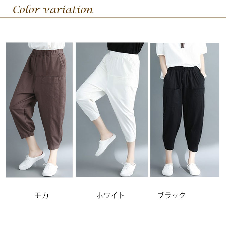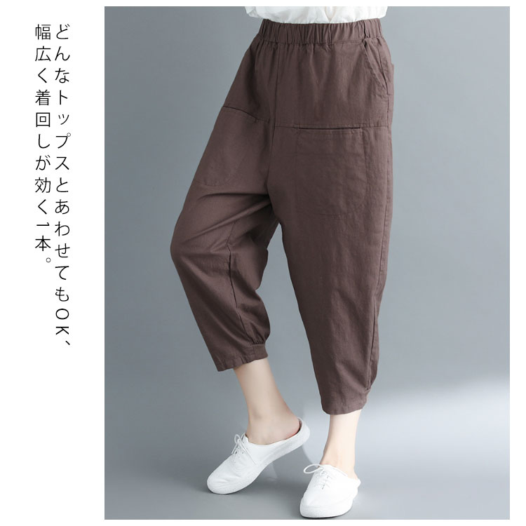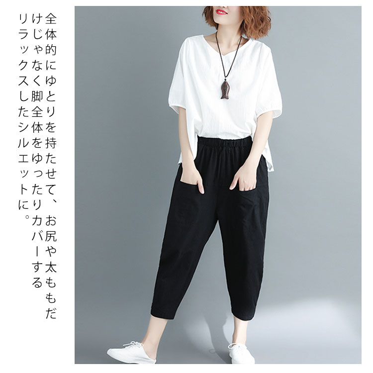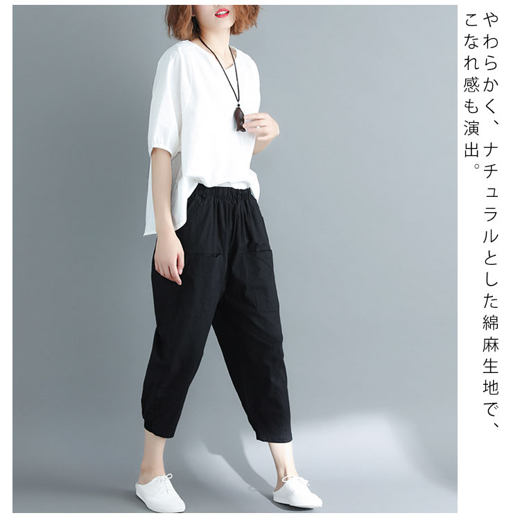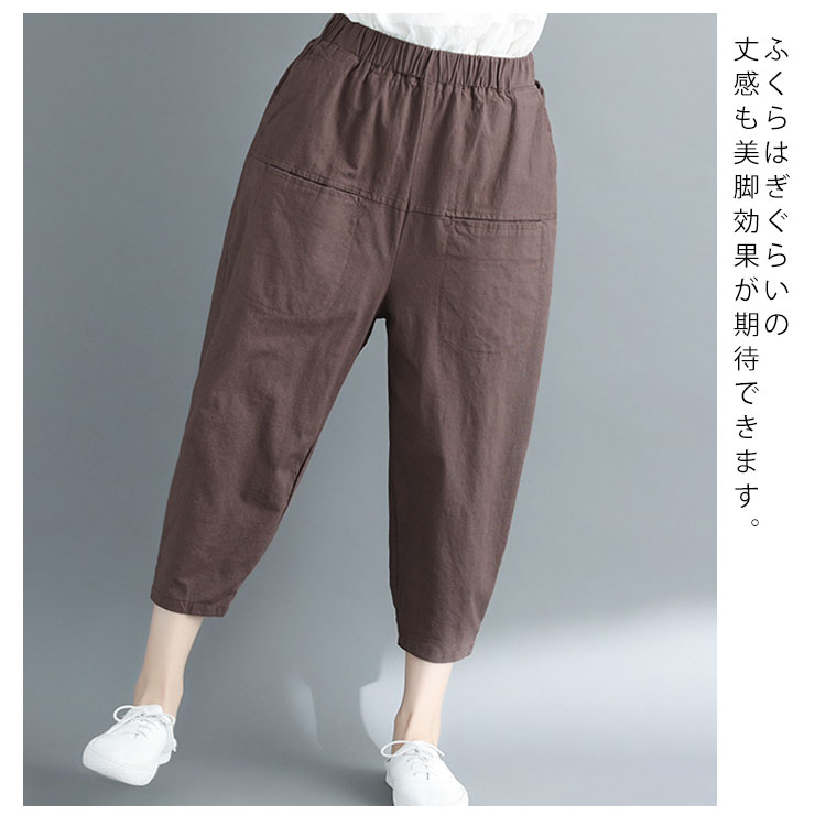 《送料無料》全3色!大きサイズ パンツ サルエルパンツ レディース 七分丈パンツ アンクル丈 ボトムス サルエル ゆったり ウエストゴム 綿麻 リネン ナチュラル 美脚 春夏