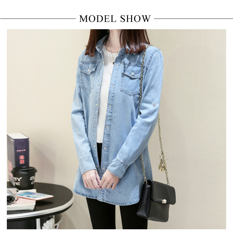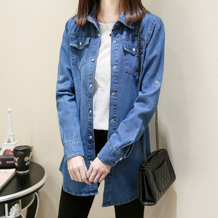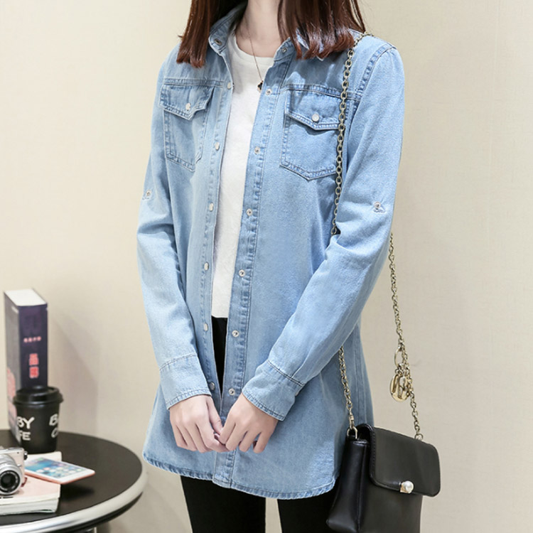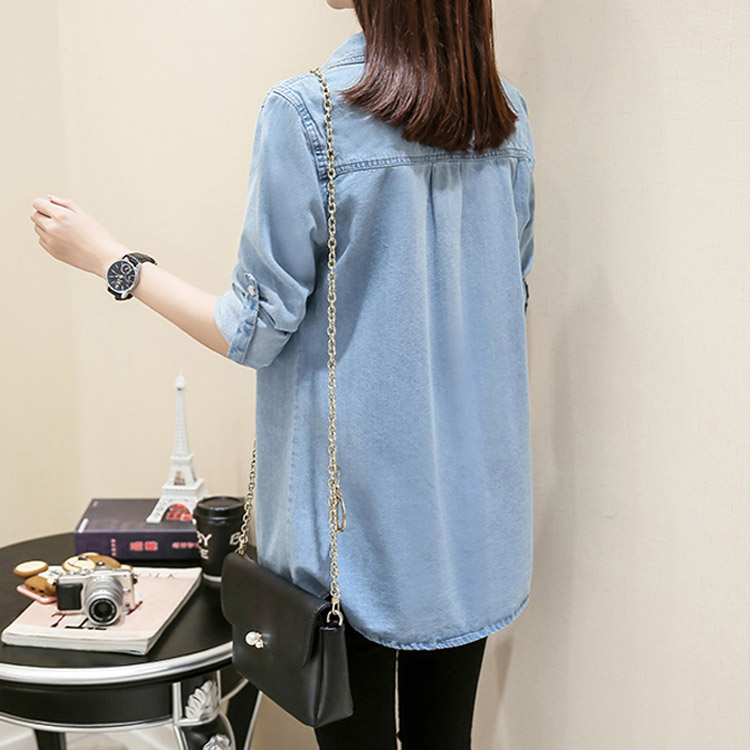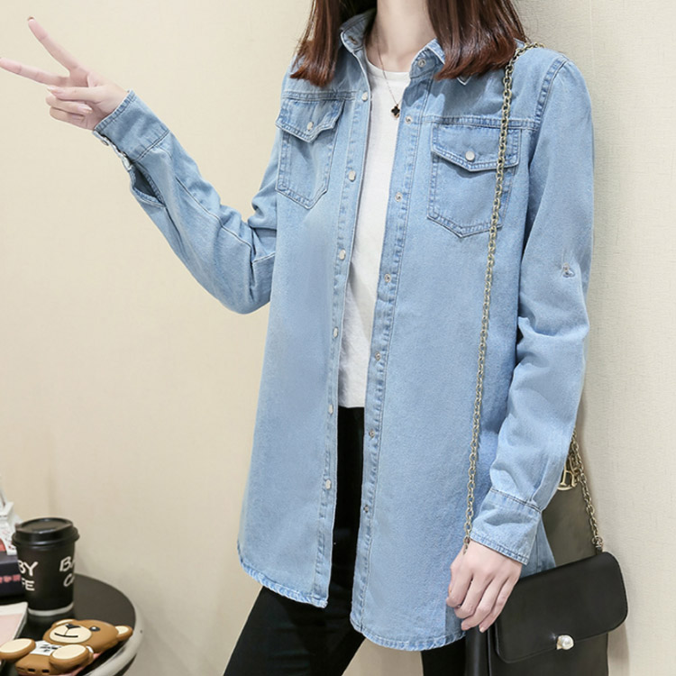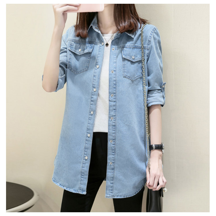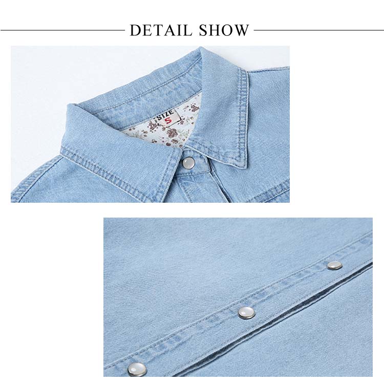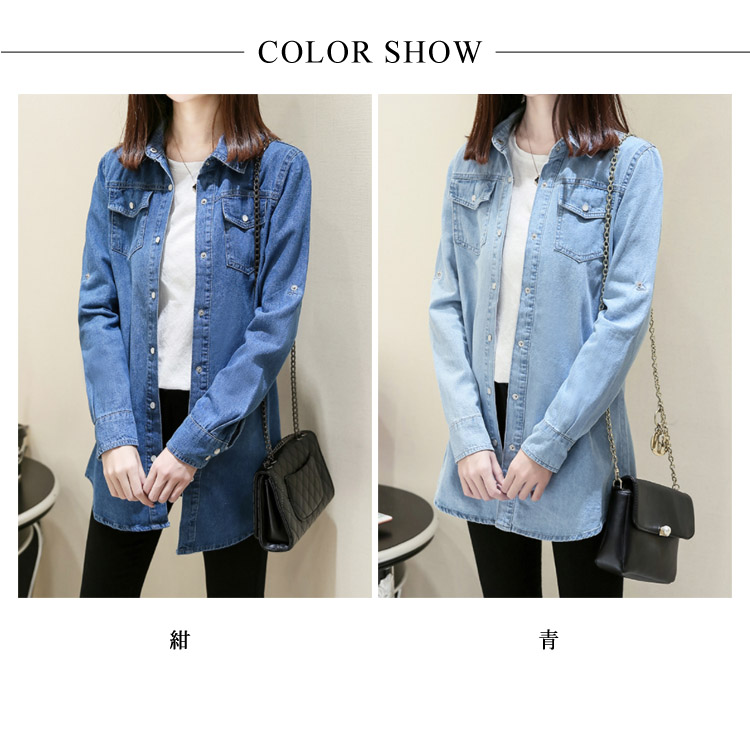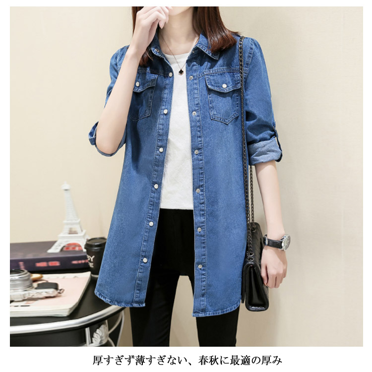 送料無料 ブラウス デニム レディース デニムシャツ デニムブラウス 長袖 折り襟 丸襟 ボタン付き ポケット付き 無地 カジュアル キレイめ お洒落 ゆったり 重ね着 レイヤード 春秋 前開き 秋新作