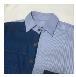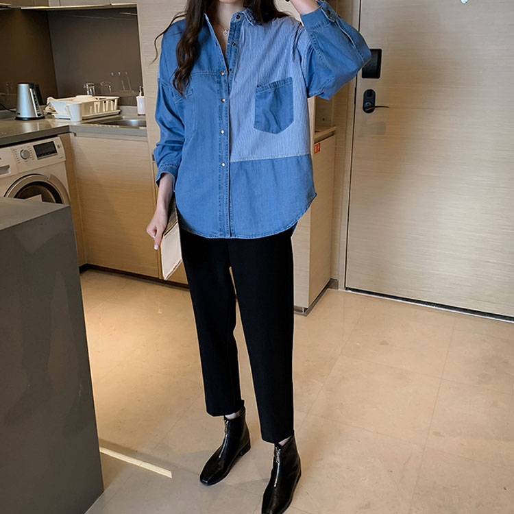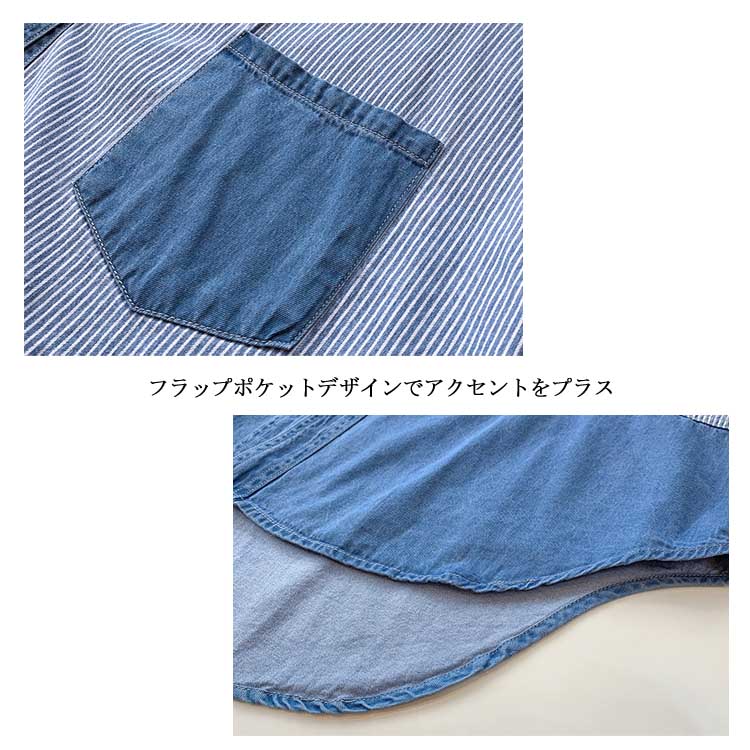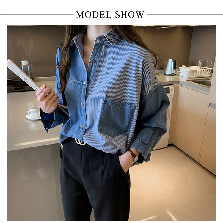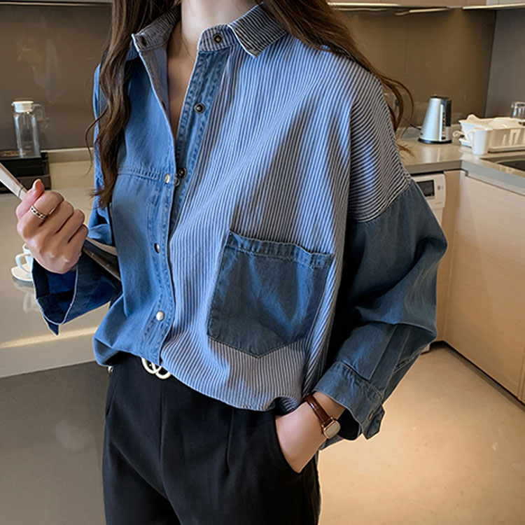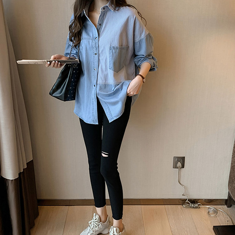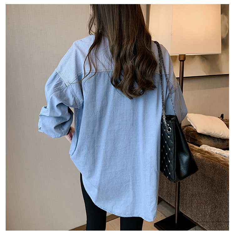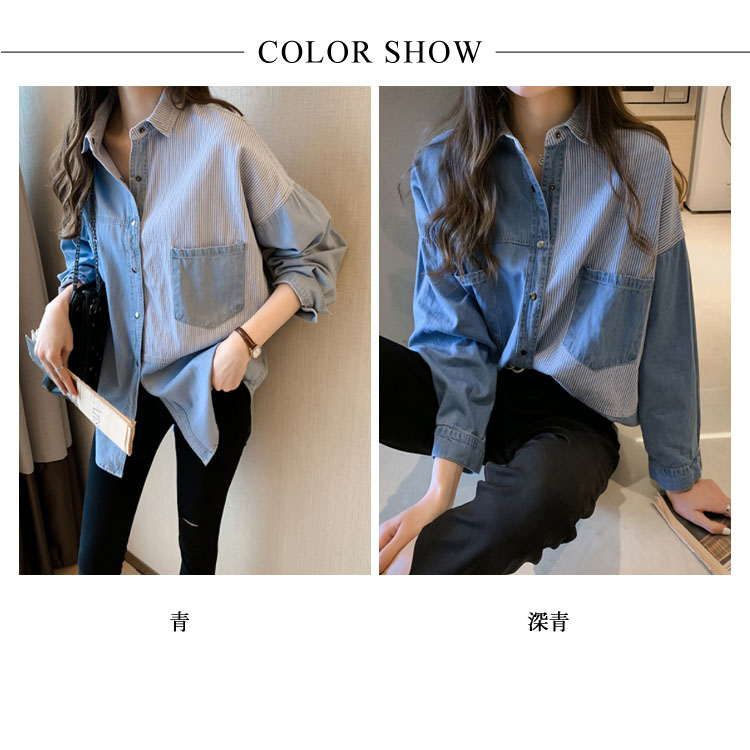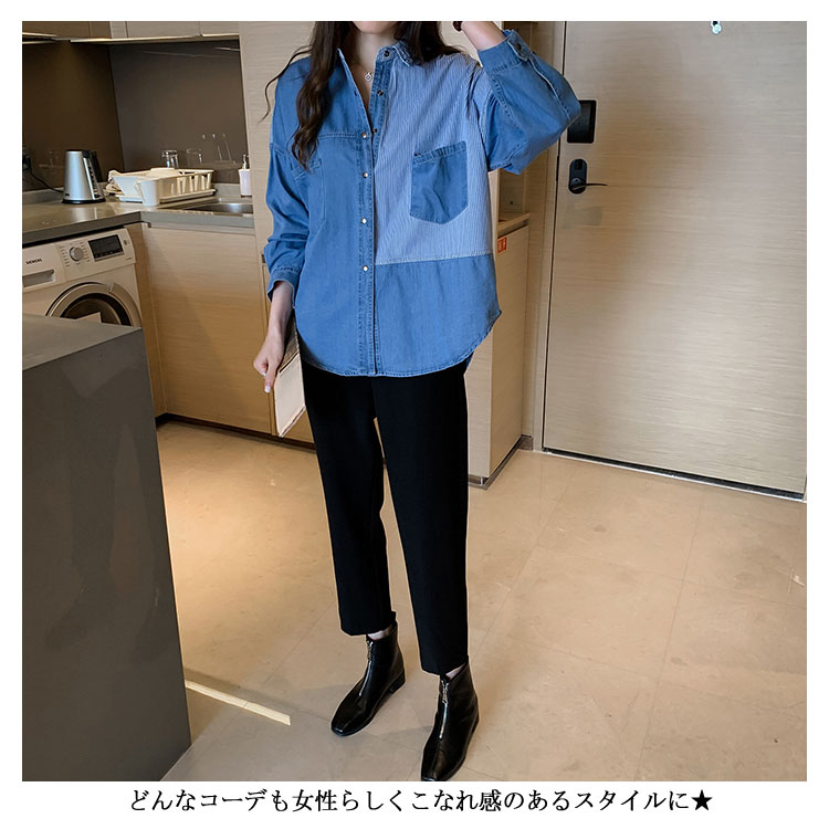 送料無料 デニムシャツ レディース シャツブラウス 長袖シャツ カジュアルシャツ 無地シャツ ロングシャツ ストライプシャツ 切り替え ライトアウター ルーズ ゆったり トレンド お洒落 かわいい 秋新作