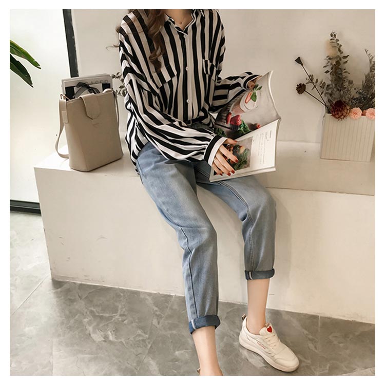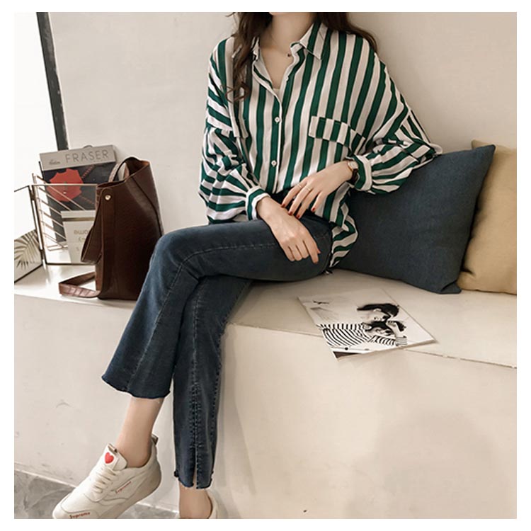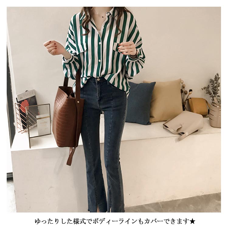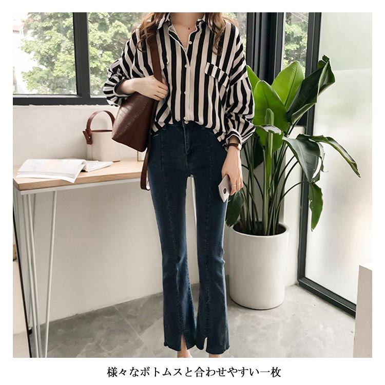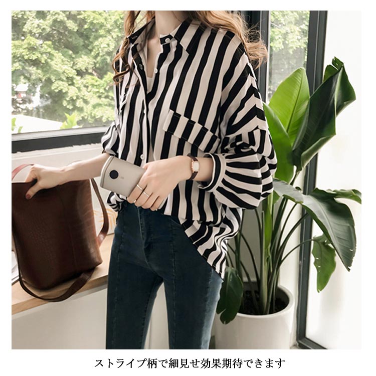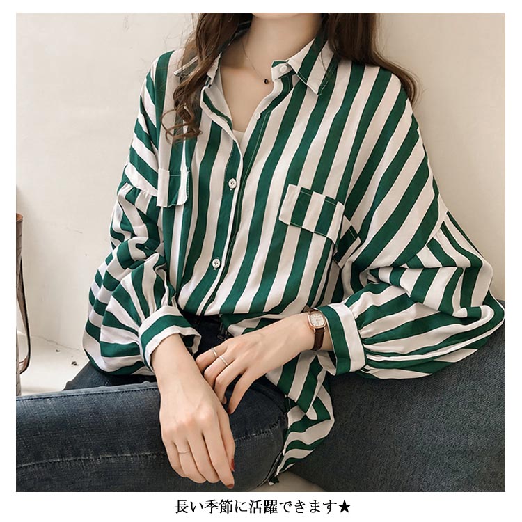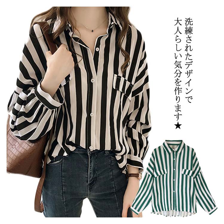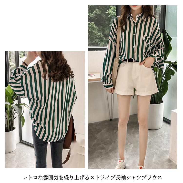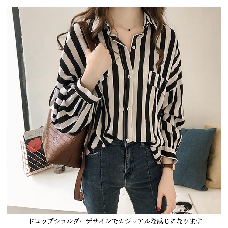 送料無料 シャツブラウス レディース ブラウス 長袖ブラウス 角襟 ストライプ柄 ドロップショルダー レトロ シンプル カジュアル 普段着 お洒落 キレイめ トップス 夏秋新作