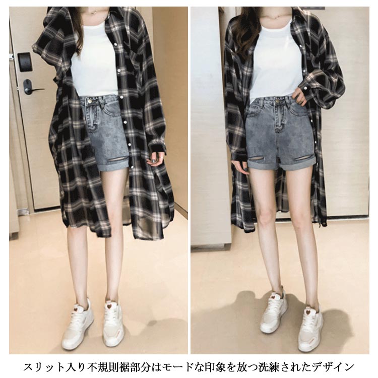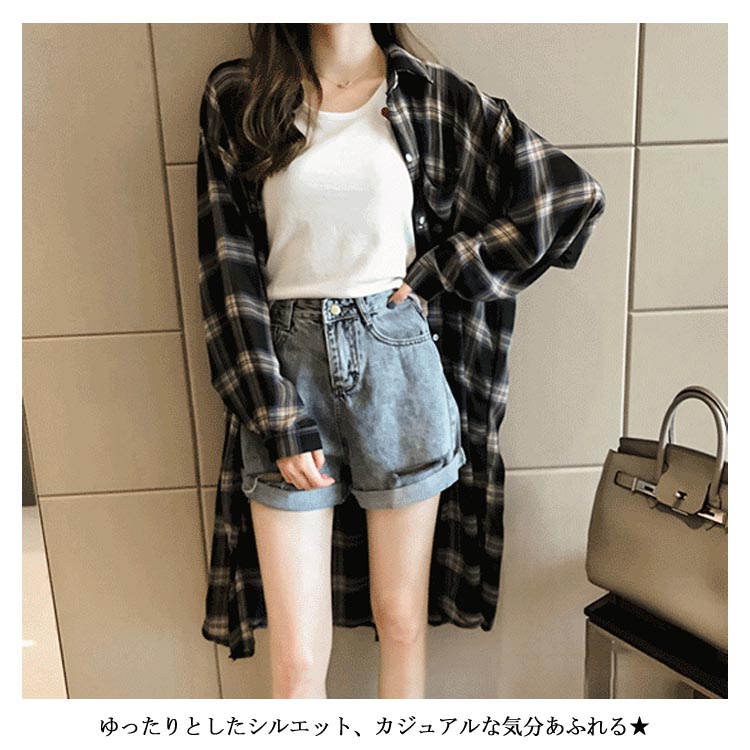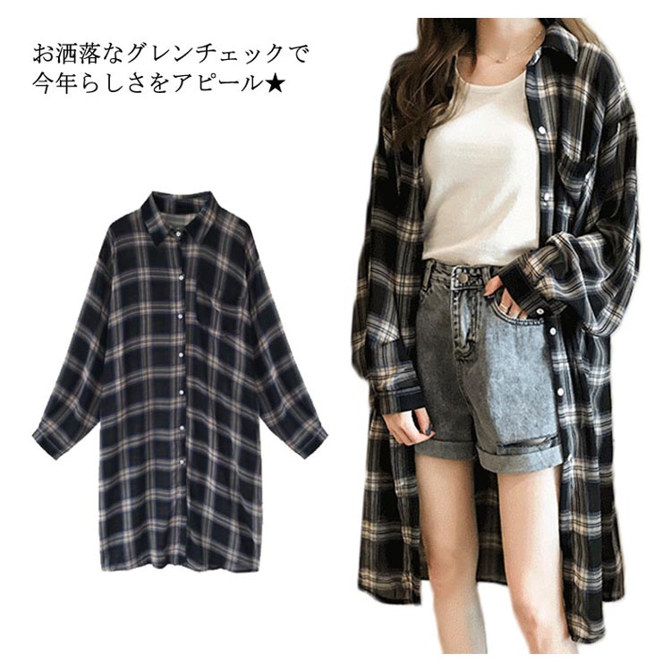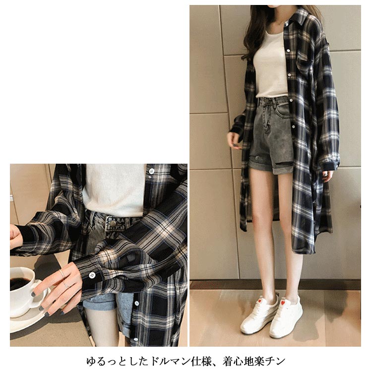 送料無料 タータンチェック レディース シャツ チェック柄 長袖 ゆるシャツ ロングシャツ ゆったり ドルマンシャツ お洒落 カジュアル クラシカル トップス ライトアウター 秋新作