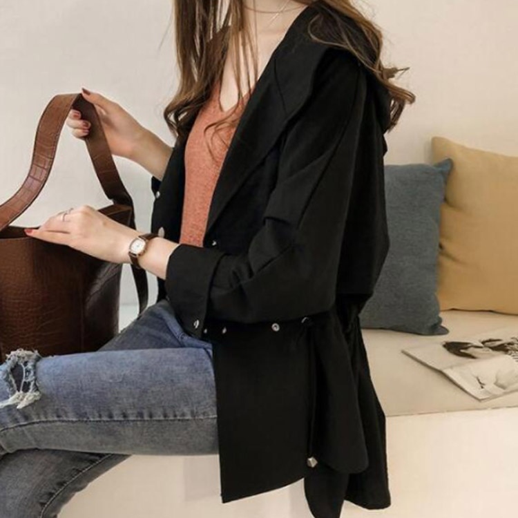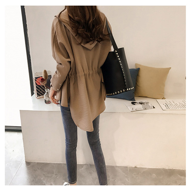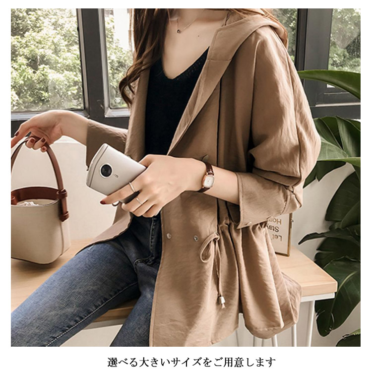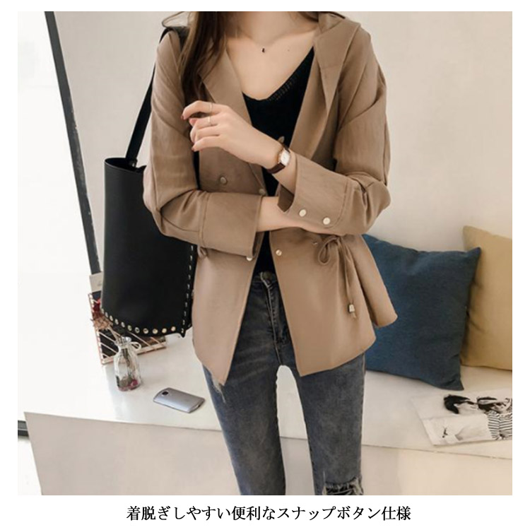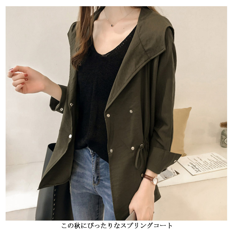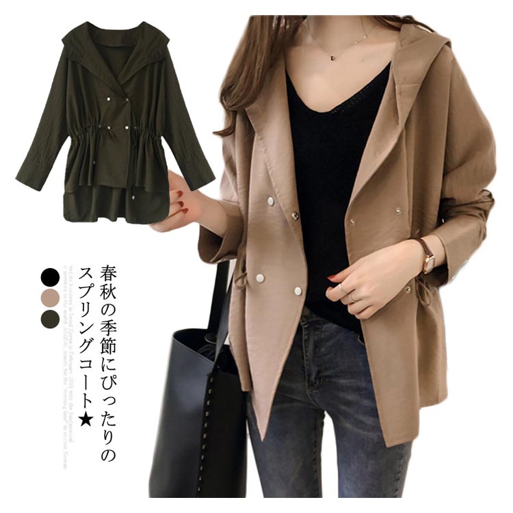 送料無料 スプリングコート レディース トレンチコート フード付き 長袖 ノーカラー ゆったり 春秋アウター ドロスト テールカット お洒落 カジュアル こなれ感 アウター コート ジャケット 春秋 秋新作