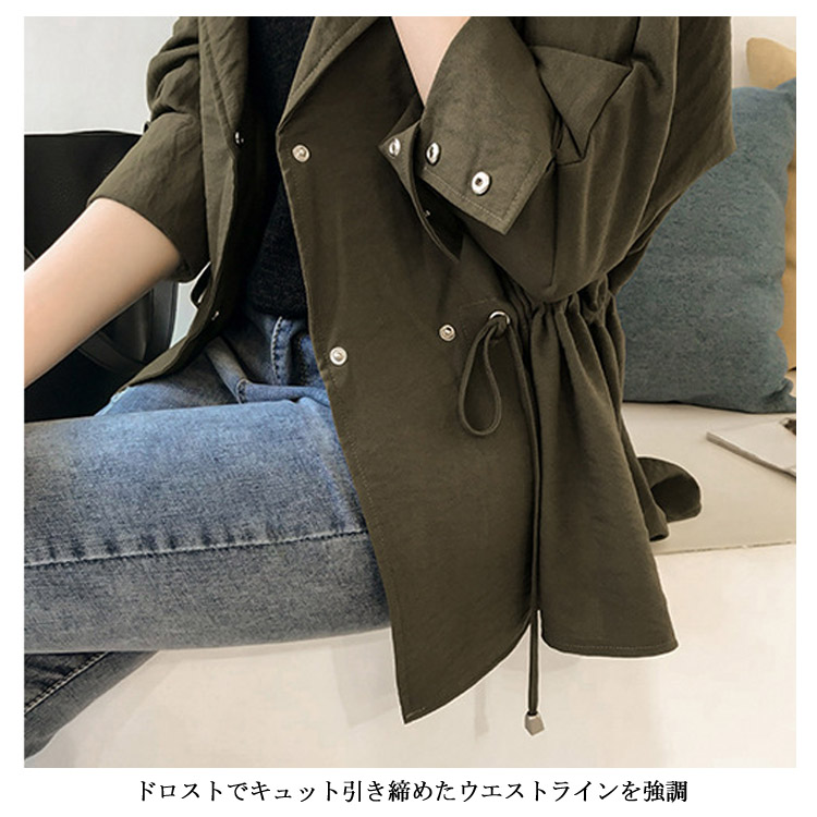 | 春秋の季節にぴったりのスプリングコート★ 落ち着いた色味で、大人っぽさを引き立てる★ テールカットで、ヒップラインをすっぽりカバーする★ | |