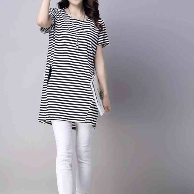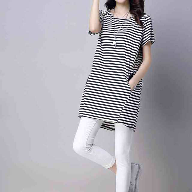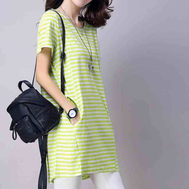 | 毎日でも着たいシンプルボーダー柄チュニック。大人なゆるシルエットでこなれ感たっぷりなリラックスカジュアルを叶える一枚!伸縮性にも富んだ素材を使用しているので、着心地も快適です。サイドポケットも付いて便利。ブラックとイエローの2色、サイズもMから5XLまで展開で選べるのも嬉しい。タイトなボトムスと合わせて絶妙な感じと思います。 | |||