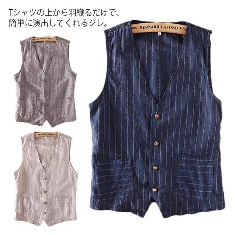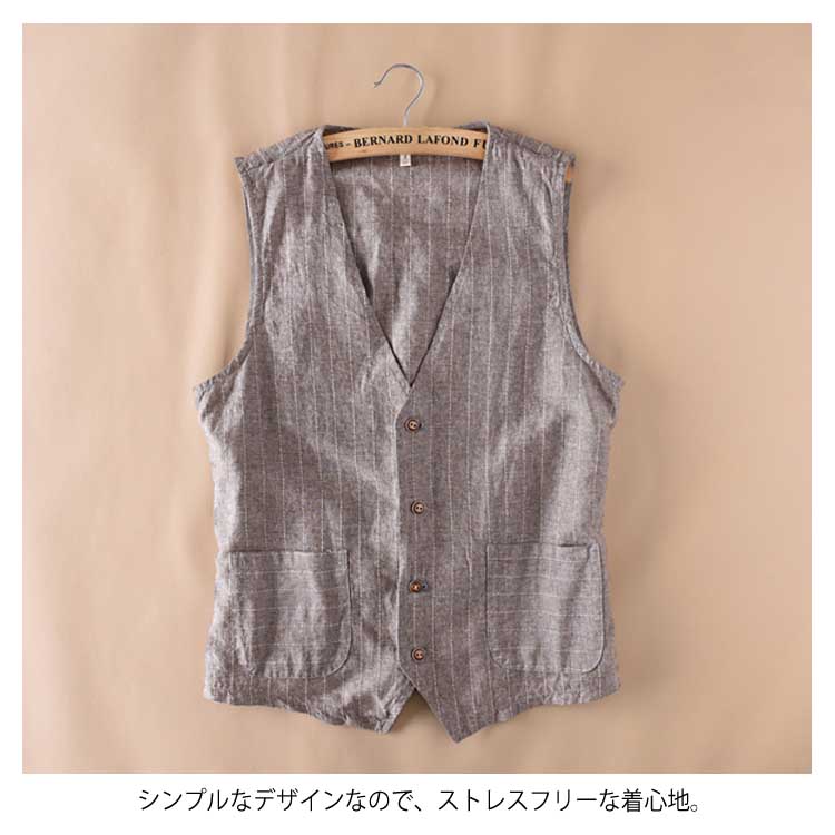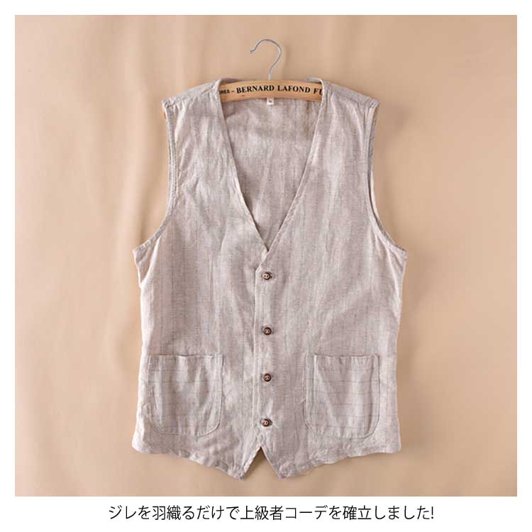 送料無料 ベスト ジレベスト メンズ トップス スーツベスト チョッキ 綿麻 メンズファッション ビジネス コーディネート 大人 春秋 紳士用 薄手