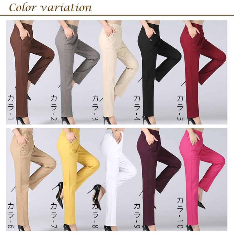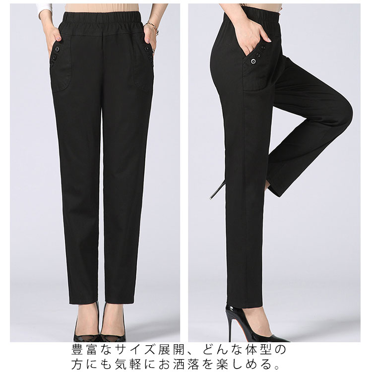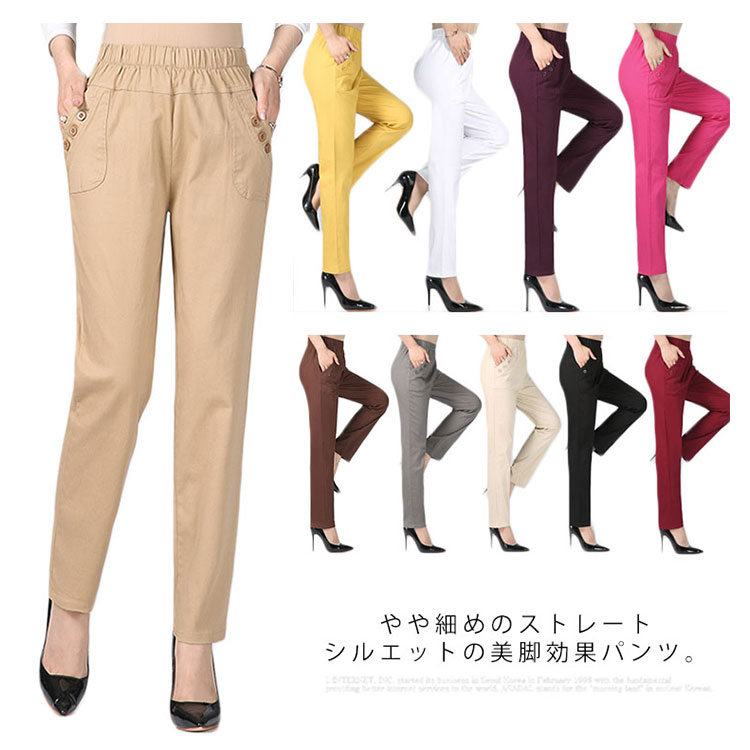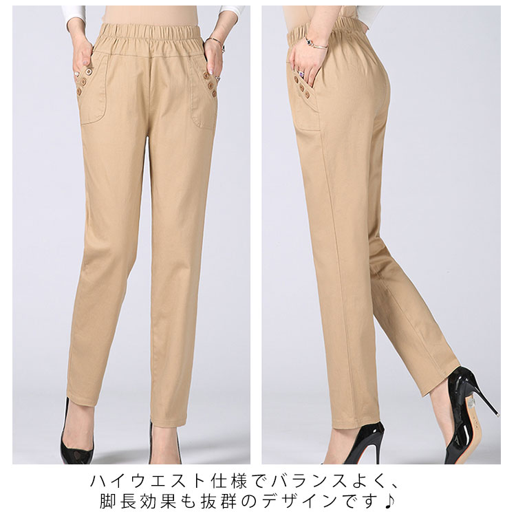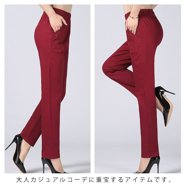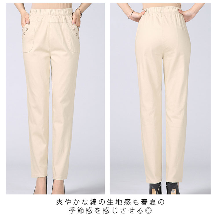 送料無料 全10色 ロングパンツ ボトムス レディース 綿パンツ ウエストゴム 長パンツ ハイウエスト 大きいサイズ お洒落 30代 40代 50代 春秋
