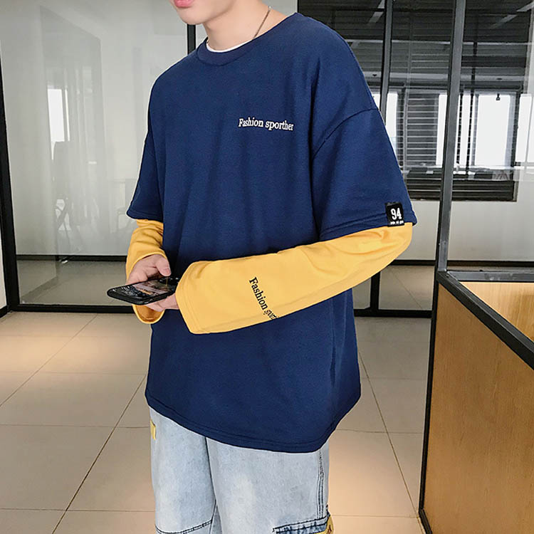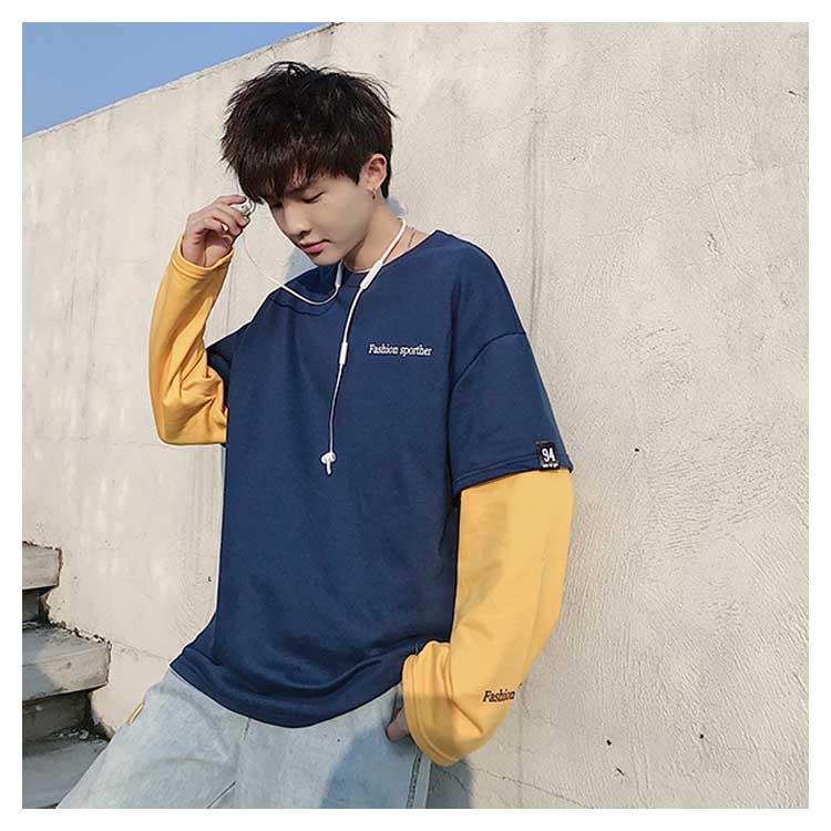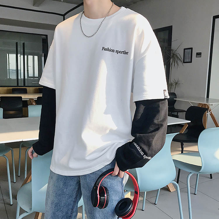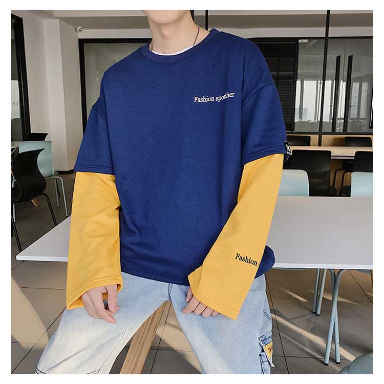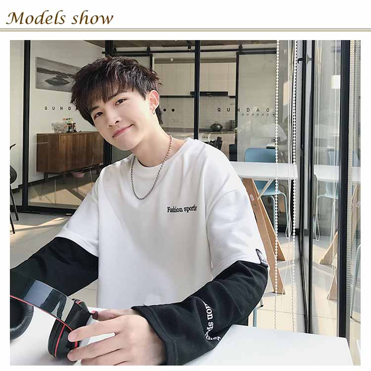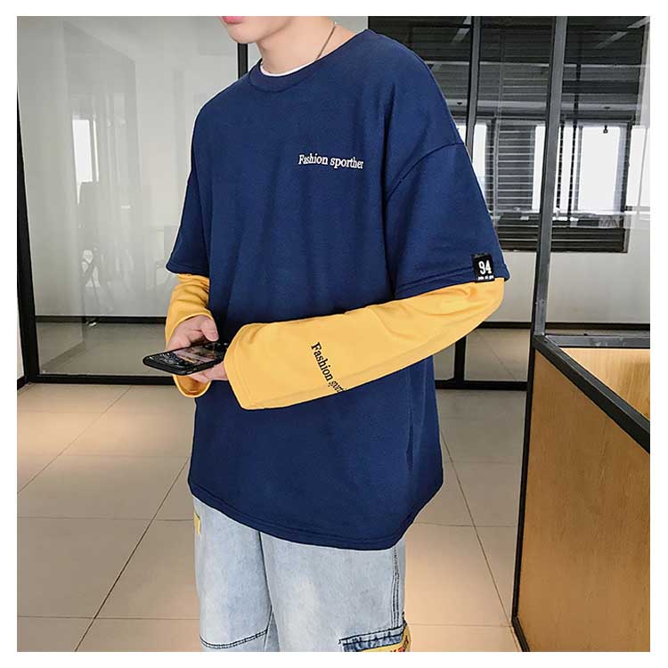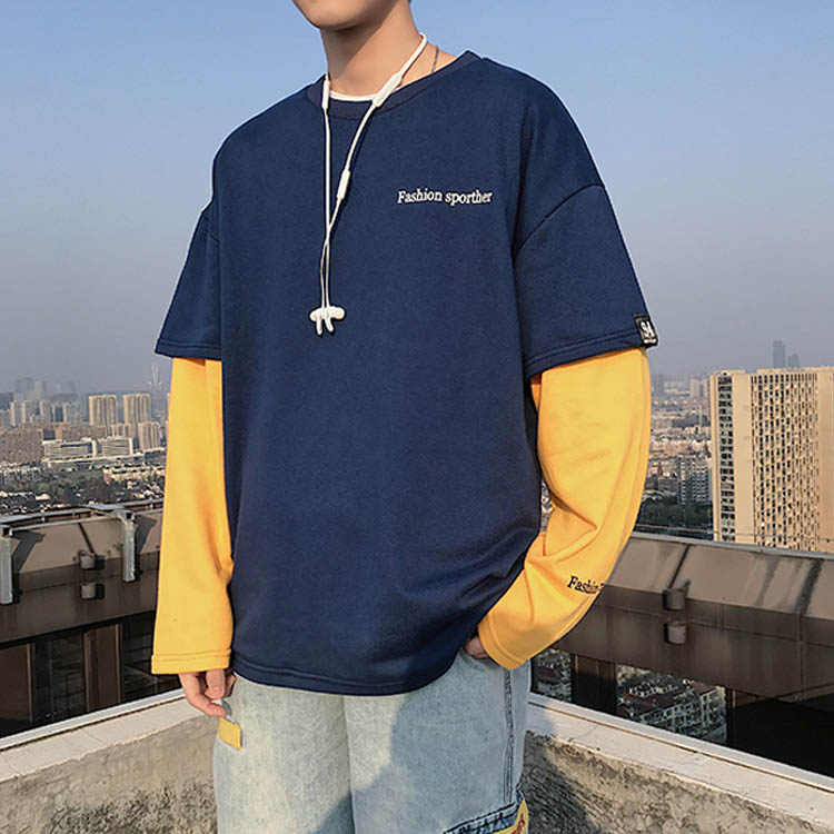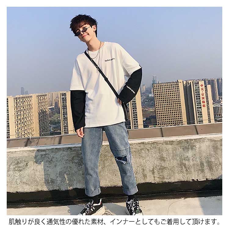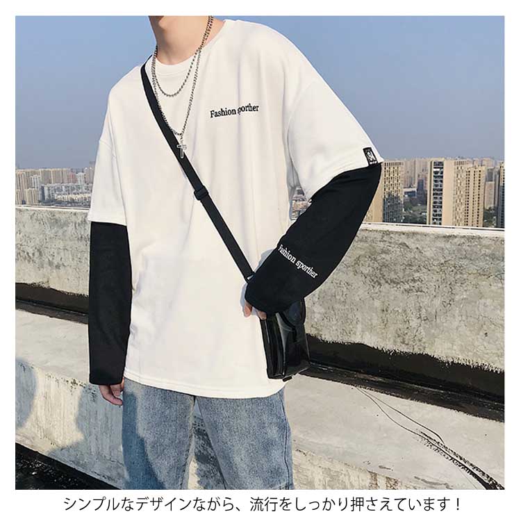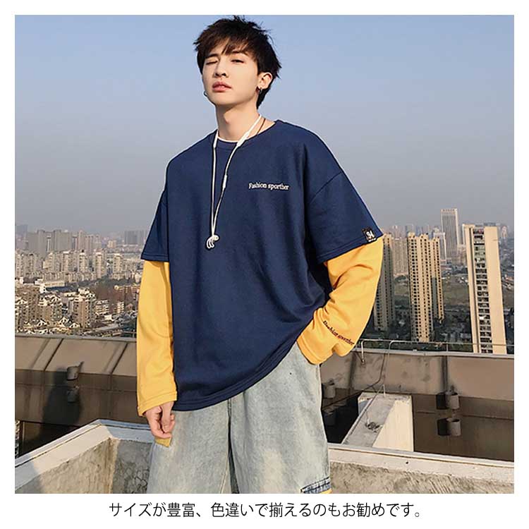 送料無料 Tシャツ メンズ 長袖 大きいサイズ カットソー 重ね着 シンプル クルーネック トップス 春秋 お洒落 ゆったり 新作