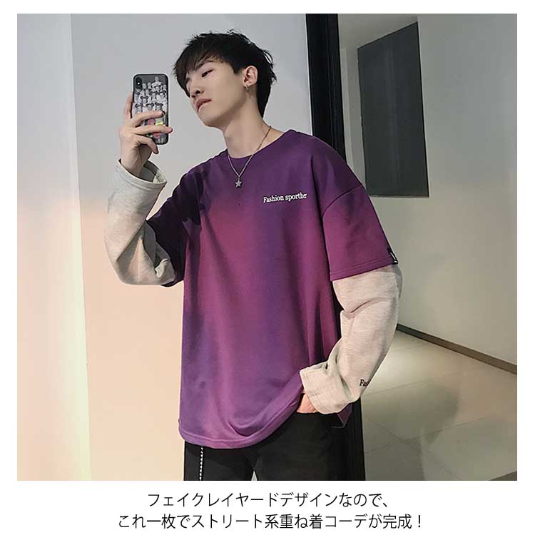 | 長袖フェイクレイヤードTシャツ新登場。 シンプルなデザインながら、流行をしっかり押さえています! 肌触りが良く通気性の優れた素材、インナーとしてもご着用して頂けます。 フェイクレイヤードデザインなので、これ一枚でストリート系重ね着コーデが完成! サイズが豊富、色違いで揃えるのもお勧めです。 | |