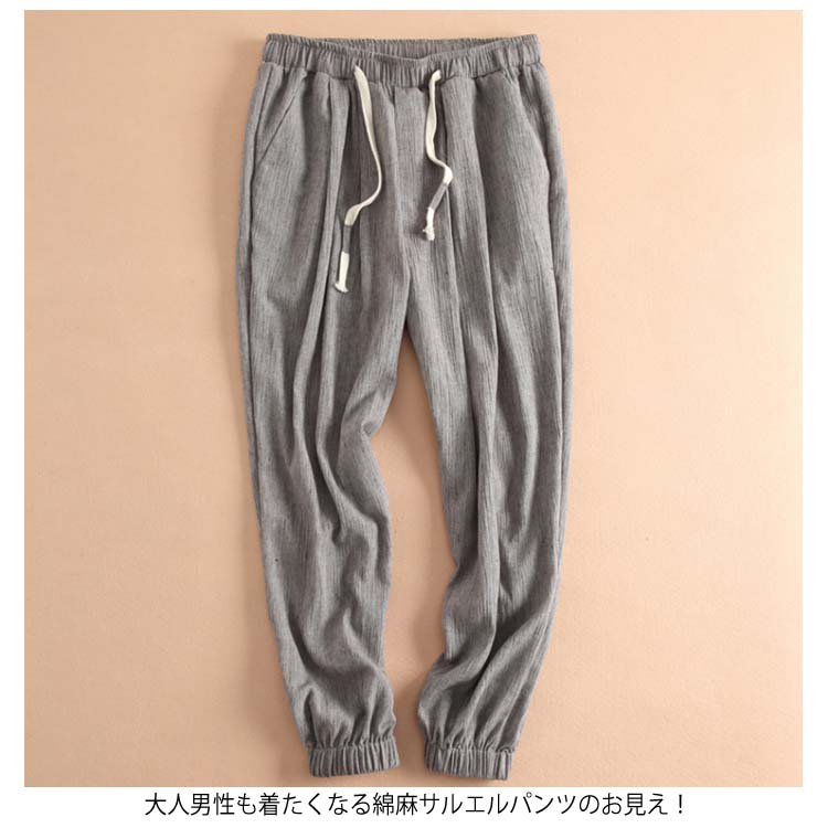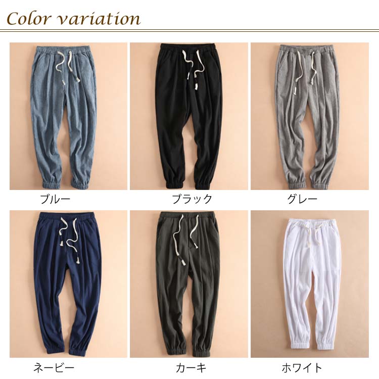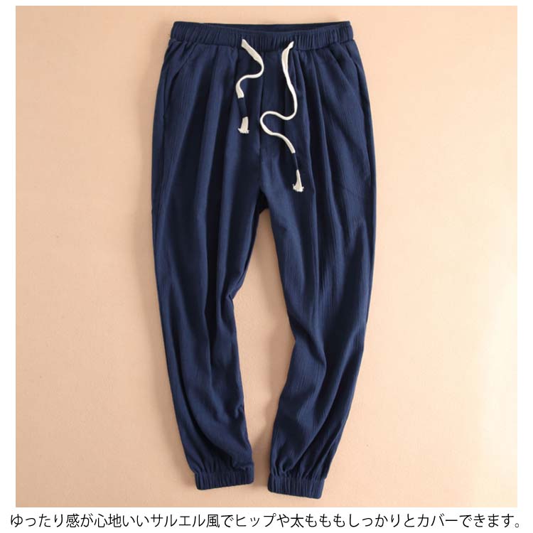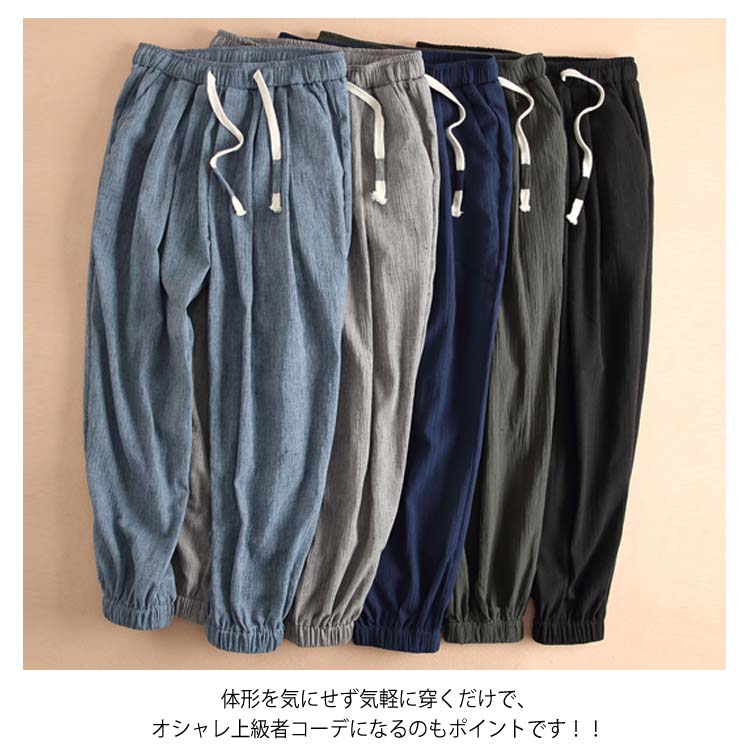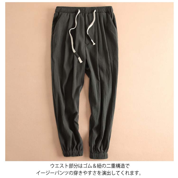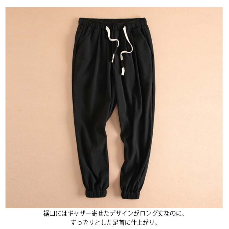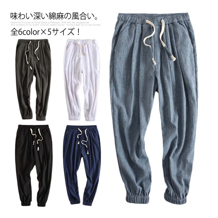 《送料無料》全6color×5サイズ!リネンパンツ メンズ ボトムス ロングパンツ リネン 綿麻 イージーパンツ サルエルパンツ ジョガーパンツ シンプル 無地 ゆったり 春 夏