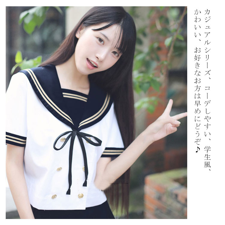 | 大人気セーラー服が新登場! セーラー風の襟元は可愛い雰囲気に魅せてくれる。 カジュアルシリーズ、コーデしやすい、学生風、かわいい、お好きなお方は早めにどうぞ♪ | |