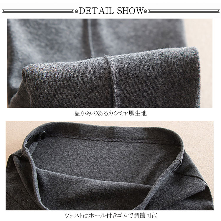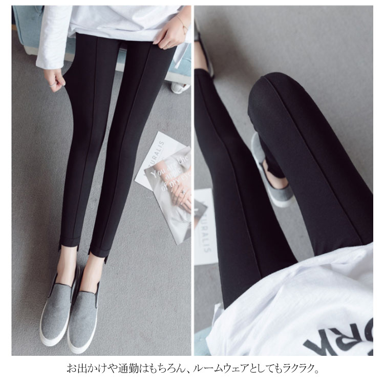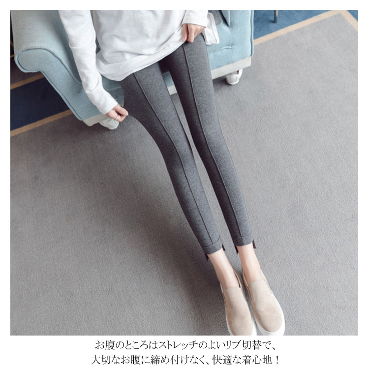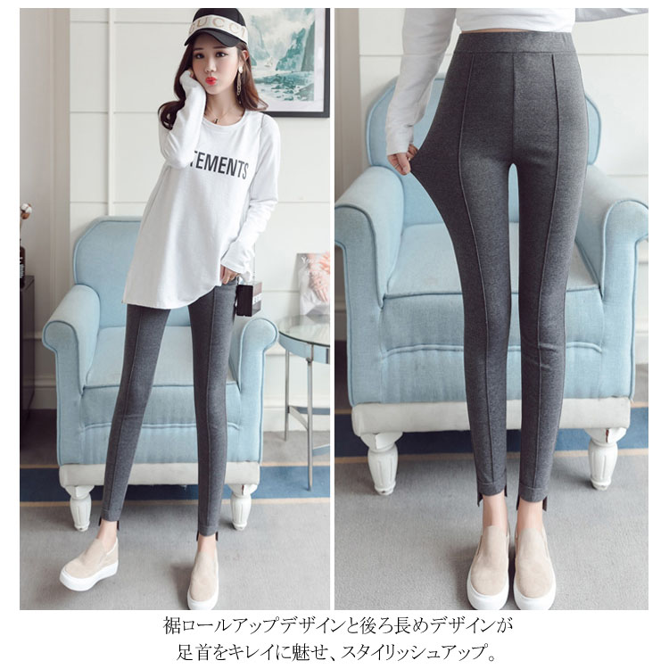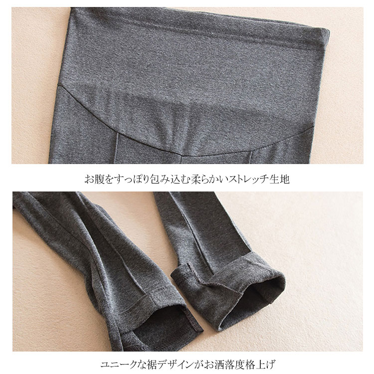| フロントダーツ入りで脚長・美脚効果抜群のマタニティレギンス。 ストレッチ抜群の素材で、脚にぴったりとフィットし、美しいラインを作り出し、脚長・美脚効果抜群。 温かみのあるカシミヤ風生地、上品さ漂うマタニティレギンスパンツ。 お腹のところはストレッチのよいリブ切替で、大切なお腹に締め付けなく、快適な着心地! 裾ロールアップデザインと後ろ長めデザインが足首をキレイに魅せ、スタイリッシュアップ。 ウエスト部分は調節可能なボタンホール付きゴム仕様で妊娠初期~臨月・産後まで変化するウェストに合わせて調節し、ジャストサイズで着用いただけます。 お出かけや通勤はもちろん、ルームウェアとしてもラクラク。 | |