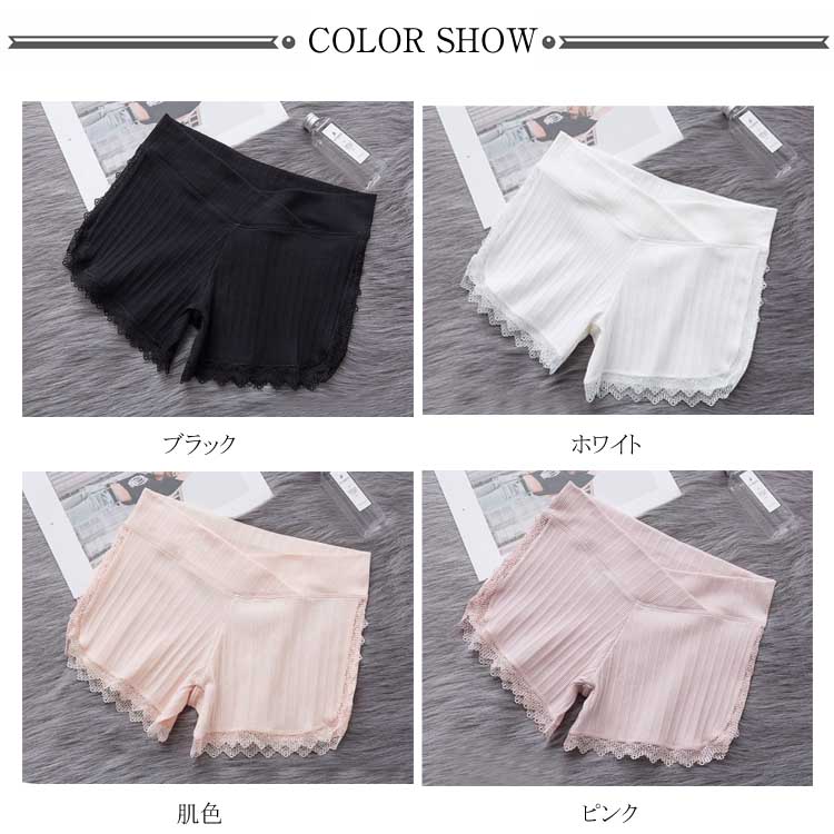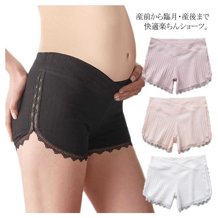 | 産前から臨月・産後まで快適楽ちんショーツ。 レース使いで大人可愛くてお洒落さ満点!チラ見せ防止のインナーパンツとしても◎ 前が少し浅めのクロス構造でお腹の圧迫感なく、検診用にも好まれています。 通気性・吸湿に優れた優秀な生地で、お肌に優しい伸縮性のあるリブ素材、締め付け感なく着心地抜群。 お尻をすっぽり包み込みボクサータイプなので、ズレにくいから安心! 産前から産後まで一年中楽に使えるショーツは先輩ママに絶賛! | |