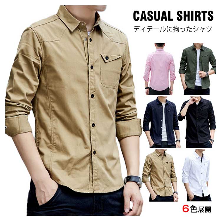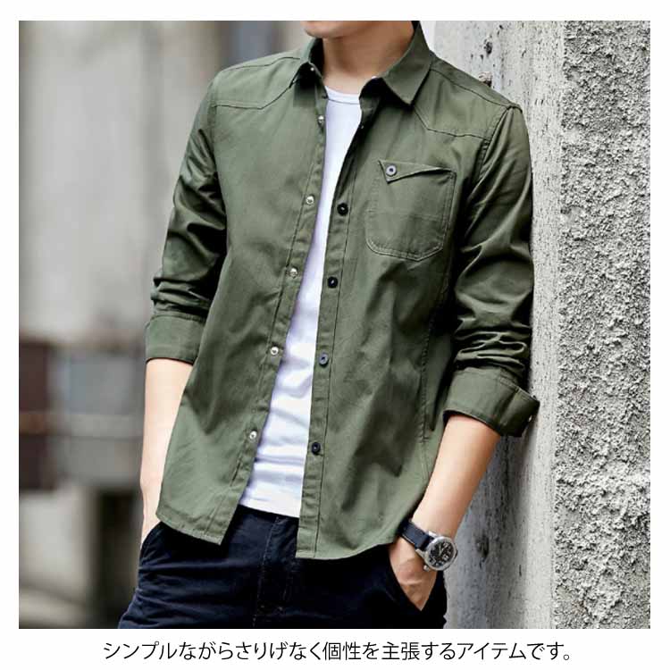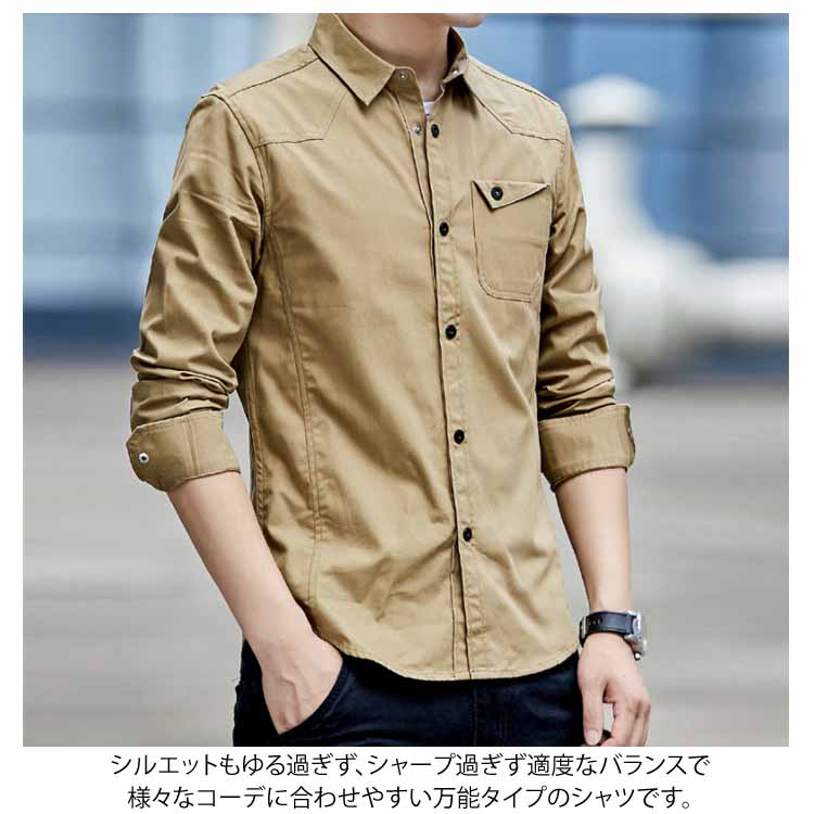 長袖シャツ メンズ シャツ 長袖 ミリタリーシャツ レギュラーシルエット カジュアルシャツ ロールアップ アメカジ キレイめ カジュアル ストリート