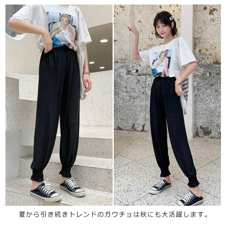 《送料無料》シフォンパンツ ジョガーパンツ ワイドパンツ クロップドパンツ ゆったり レディース 無地 トッド柄 ファッション ガウチョパンツ カジュアル 着痩せ 夏 可愛い 新作