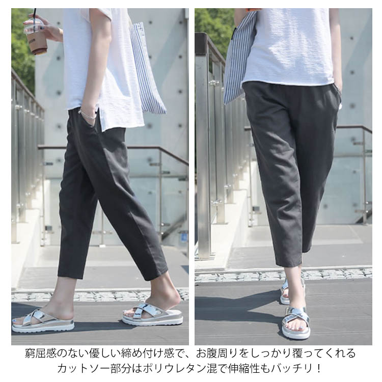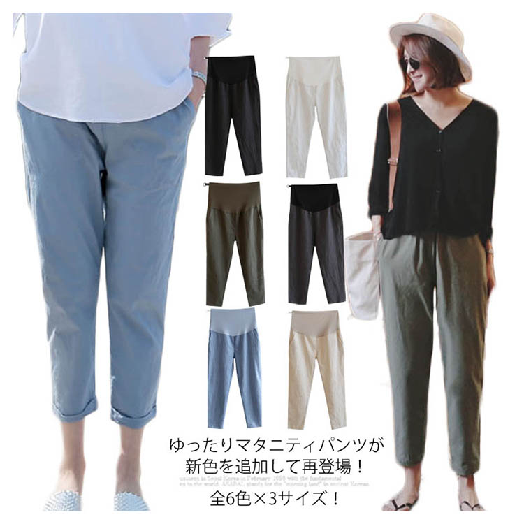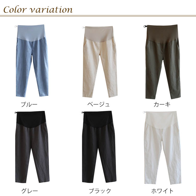 《送料無料》全6色×3サイズ!マタニティパンツ 綿麻 パンツ マタニティ用 マタニティウエア テーパードパンツ カジュアルパンツ シンプル 無地 春 夏 秋
