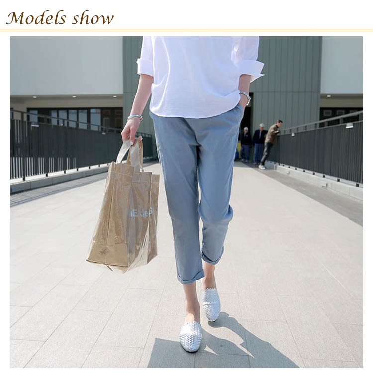 | 全6色×3サイズ!ゆったりマタニティパンツが新色を追加して再登場! リブウエストでよく伸び、ストレスフリーな穿き心地が人気の秘密。 お腹が大きくなる段階に合わせられるよう、アジャスター仕様になっており、妊娠初期から臨月まで、長い間着用していただくことが可能です。 窮屈感のない優しい締め付け感で、お腹周りをしっかり覆ってくれるカットソー部分はポリウレタン混で伸縮性もバッチリ! サラサラとした綿麻素材使い、汗をかいても爽やかな履き心地。 裾に向かって緩やかにラインが細くなる、カジュアルなテーパードシルエットになっています。 9分丈で歩きやすさもアップ、今季大人気の一本間違いなし。 | |