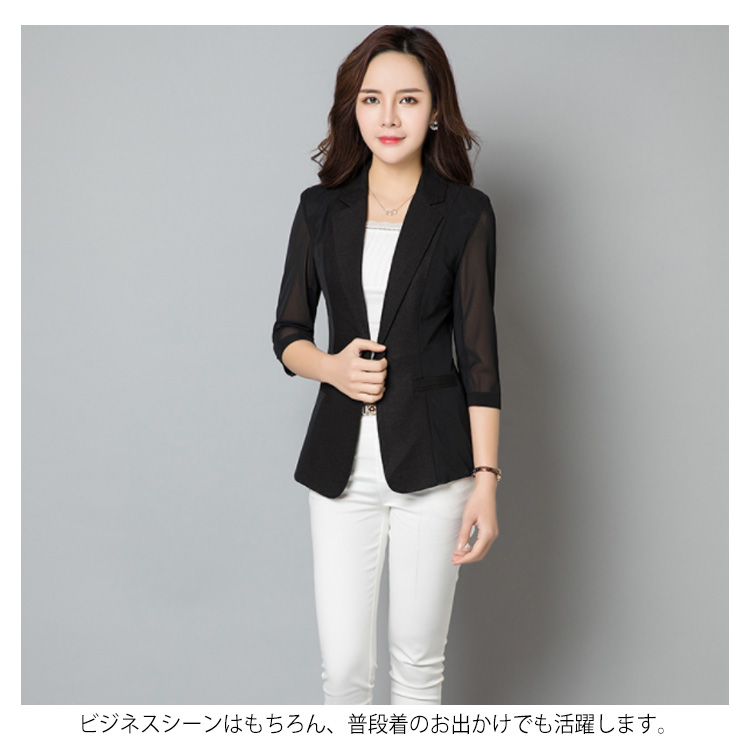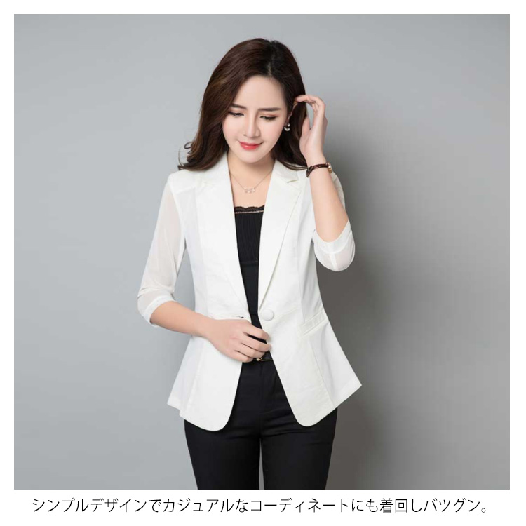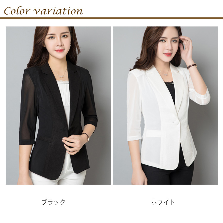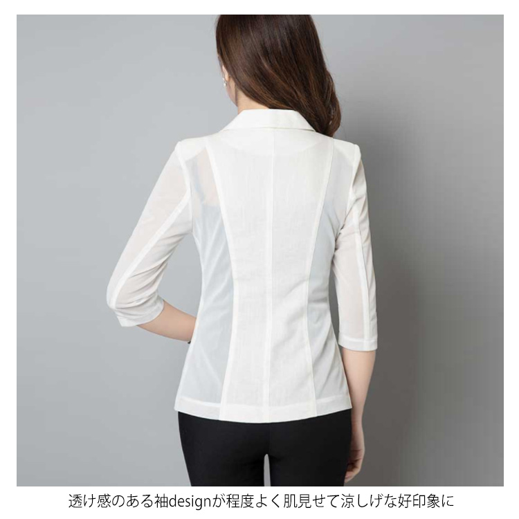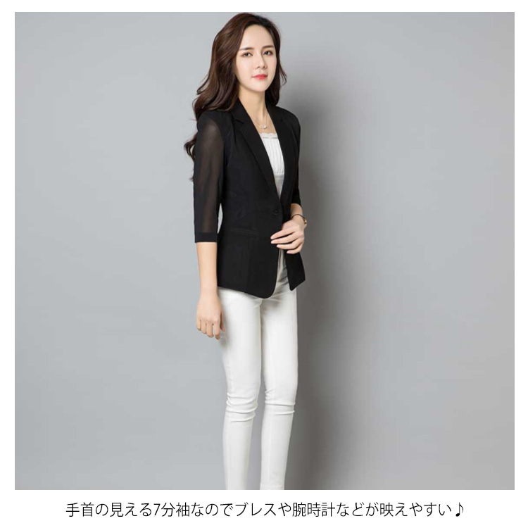 M-6XLサイズ!テーラードジャケット 七分袖 サマージャケット レディース ジャケット 七分袖ジャケット ライトアウター 透け袖 夏ジャケット ホワイト ブラック サマー 大きサイズ